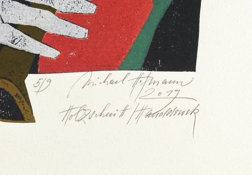 2019. Farbholzschnitt, auf Bütten. – Originale Künstlergrafik, von Michael Hofmann. – Auflage Exemplar Nr. 5/9. – 45,9 x 31,7 cm (Darstellung / Druckstock), 78 x 53,5 cm (Blatt).