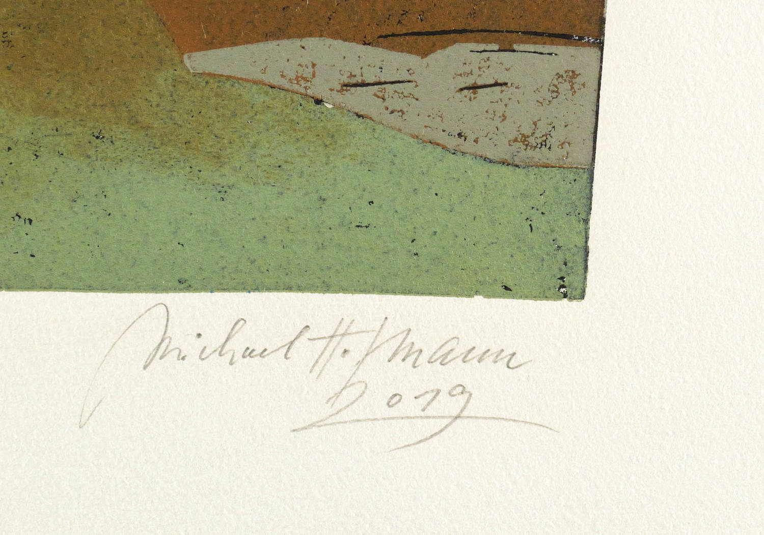 2019. Farbholzschnitt, auf Hahnemühle-Bütten. – Originale Künstlergrafik, von Michael Hofmann. – Auflage Exemplar Nr. 8/9. – 32,4 x 47,9 cm (Darstellung / Druckstock), 53 x 78 cm (Blatt).