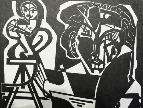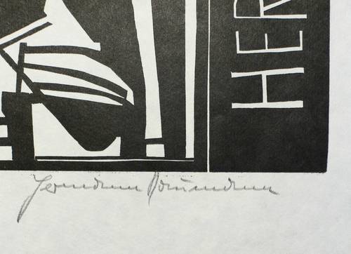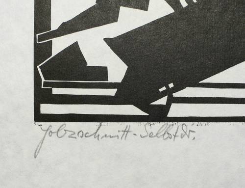 Rechts unten in Bleistift signiert, links eigenhändig bezeichnet ″Holzschnitt - Selbstdr.″. Im Stock betitelt. – Idealisiertes Selbstbildnis des Künstlers als Bildhauer im Atelier. Die plastische Studie im Hintergrund ist ein Verweis auf seine Muse und Lebensgefährtin Helga Luzens. – Geringe Knickspur in der linken unteren Ecke. Sonst ohne Mangel. Insgesamt guter Zustand.