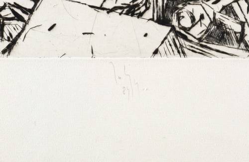 1989. Radierung / Kaltnadel, in Schwarz, auf hellchamois Hahnemühle-Bütten. – Originale Künstlergrafik, von Joachim John. – Auflage Exemplar Nr. 10/20. – 41,2 x 33,1 cm (Darstellung / Platte), 65 x 53 cm (Blatt).