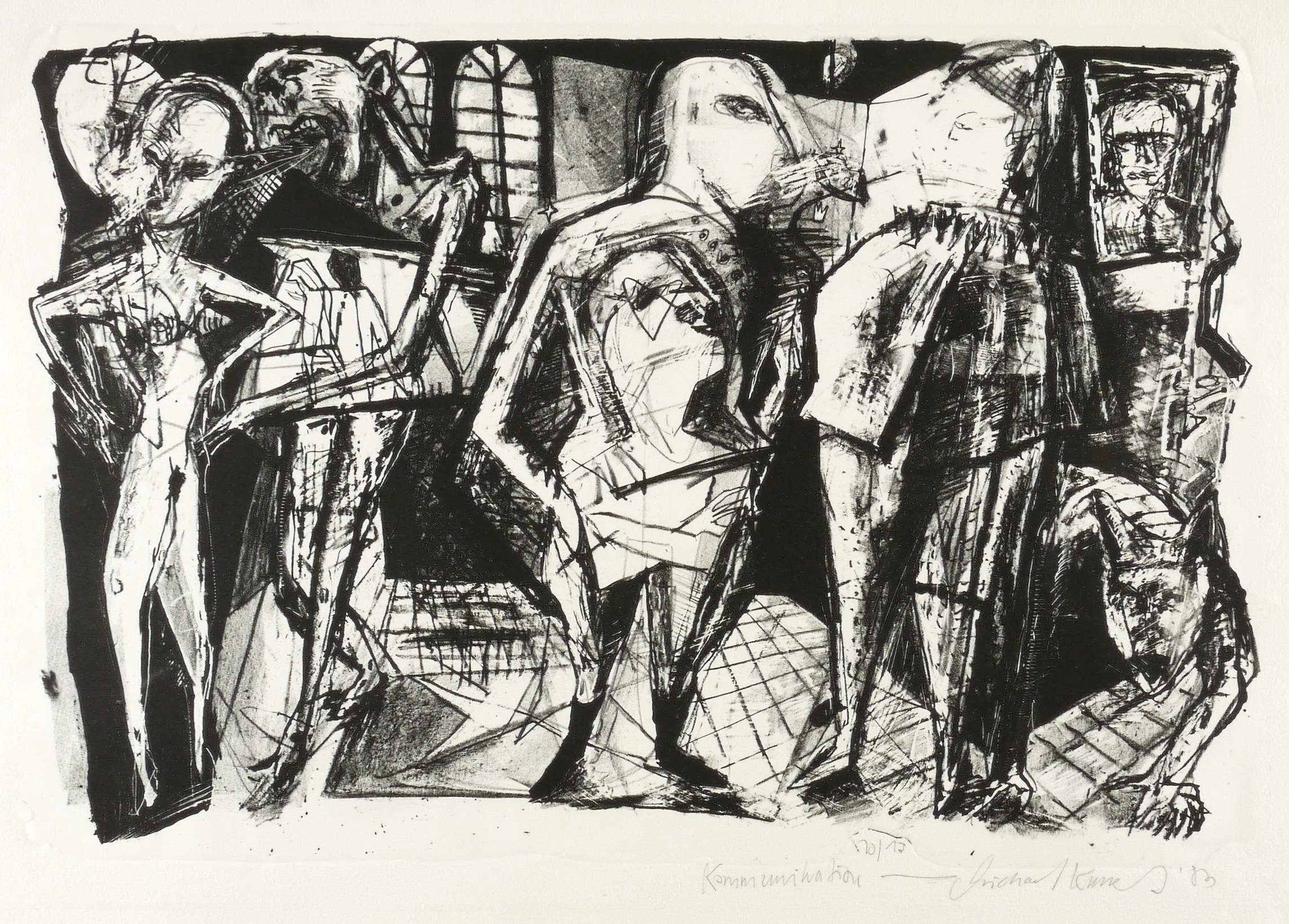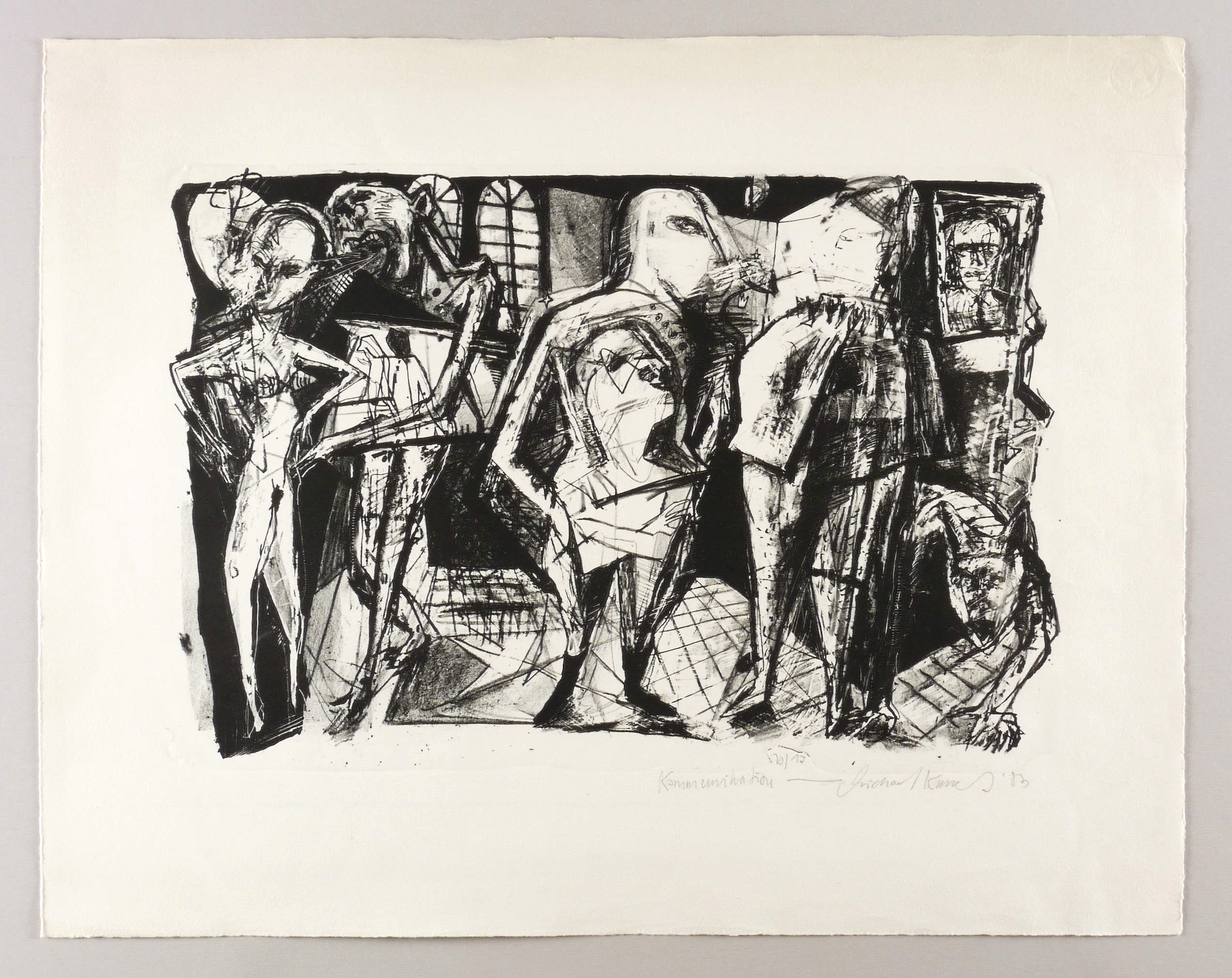 1983. Lithografie / Pinsel- & Kreidelithografie, partiell geschabt, in Schwarz, auf rauem gelbem Hahnemühle. – Von Michael Kunert. – Auflage Exemplar Nr. 10/13. – 35,5 x 52,5 cm (Darstellung / Druckbild), 54 x 68 cm (Blatt).