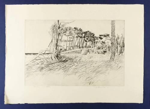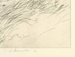 Wolfgang Werkmeister (*1941 Berlin, lebt und arbeitet in Hamburg). Deutscher Grafiker, bedeutender Vertreter der zeitgenössischen Radierkunst. 1960-64 Besuch der Akademie der Bildenden Künste Stuttgart, Fachklasse für freie Grafik und Illustration bei Gunther Böhmer. 1965 Besuch der Fachhochschule für Gestaltung Hamburg bei W. M. Busch und S. Oelke. 1966-68 tätig als Pressezeichner. 1972/73 Dozent an der Fachhochschule für Gestaltung, Hamburg. Zahlreiche Auslanfsaufenthalte und Stipendien in Marokko, USA, auf den Kanarischen Inseln, etc. 2001 Kunstpreis der Stadt Baden-Baden. Zentrales Ausdrucksmittel ist die Radierung, genauer die Aquatinta, in der er Landschaft als Hauptmotiv regelrecht zelebriert und in technisch ebenso aufwändigen wie raffinierten Blättern druckgrafisch umsetzt. Stilistisch siedelt sein Werk zwischen einem geschickt eingesetzten Fotorealismus und der lakonischen Bildsprache eines Ansel Adams.