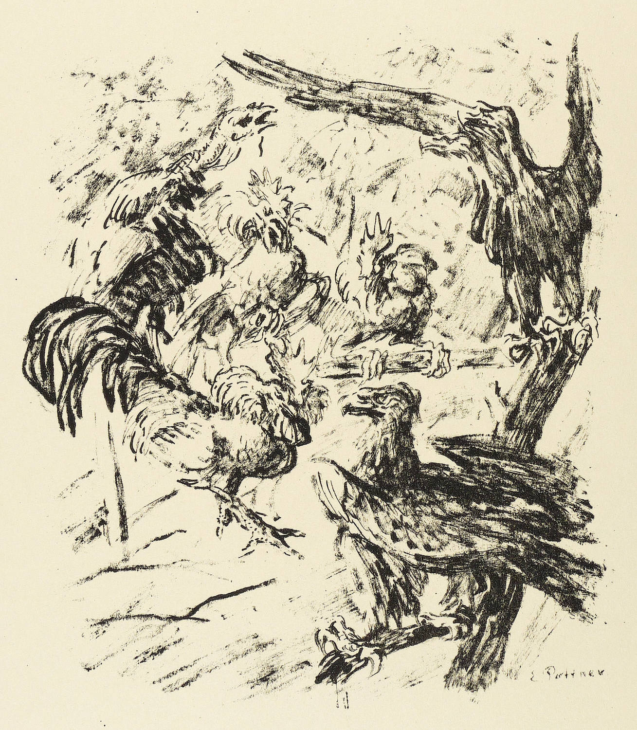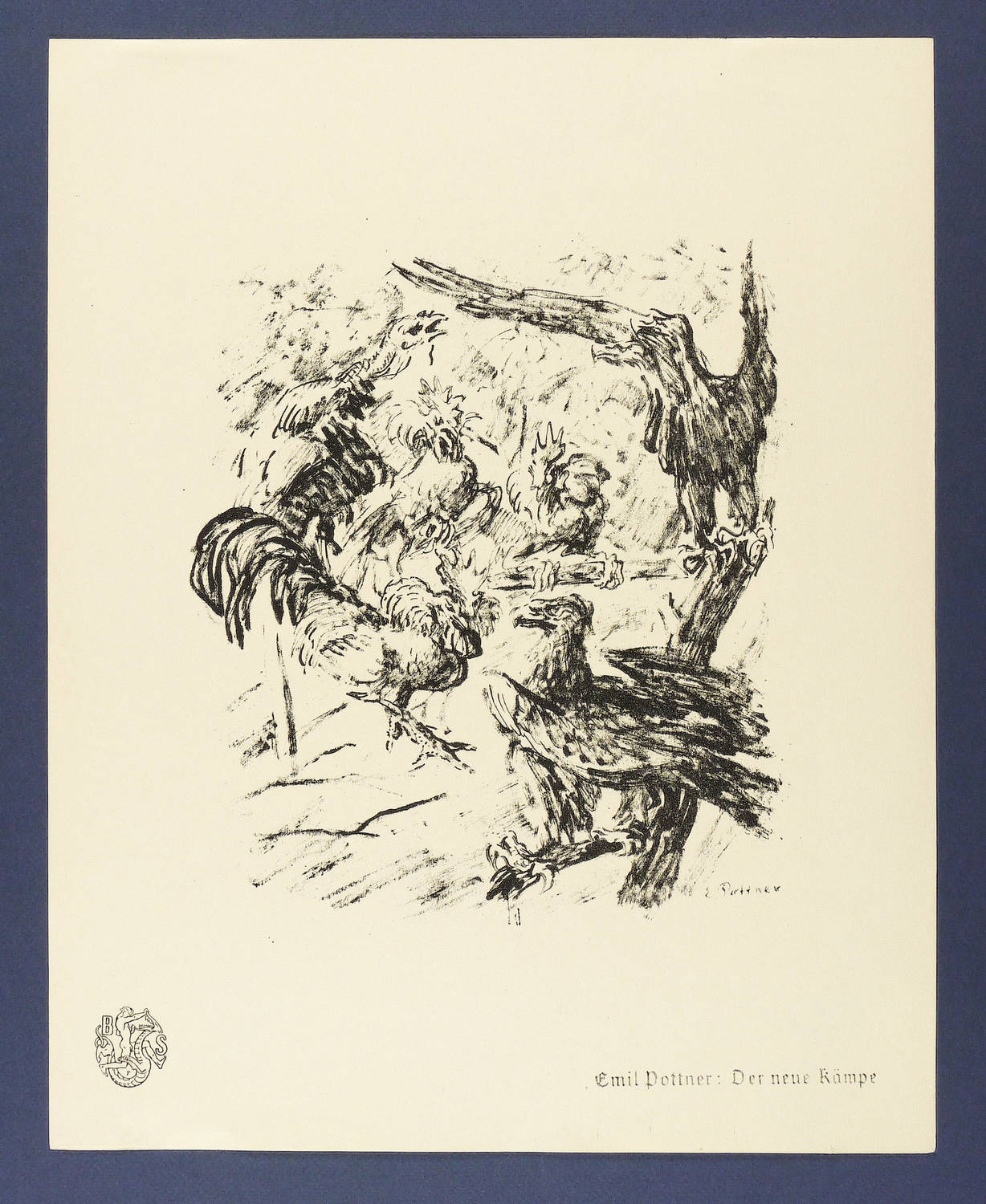 Aus: Krieg und Kunst. Original-Steinzeichnungen der Berliner Sezession (Berlin: Julius Bard 1915). – Nicht handsigniert. Im Stein rechts unten signiert: ″E. Pottner″. Im Blattrand rechts unten typografisch bezeichnet: ″Emil Pottner: Der neue Kämpe″. Links Signet der Berliner Secession. – Papier etwas gebräunt und minimal knickspurig. Guter bis sehr guter Gesamteindruck.