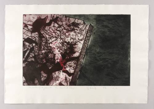 1997. Farbradierung / Aquatinta & Strichätzung, in Rot & Schwarz, auf kräftigem gelbem Velinkarton. – Originale Künstlergrafik, von Günter Firit. – Künstlerexemplar (e.a.). – 39,6 x 59,6 cm (Darstellung / Platte), 55 x 80 cm (Blatt).