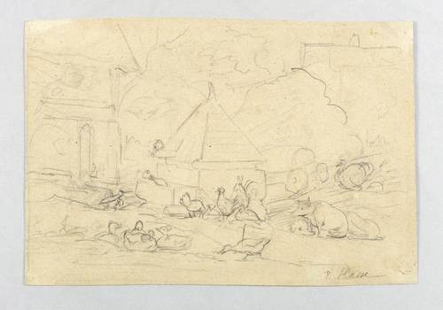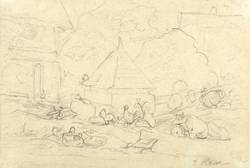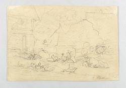 1840-1850. Zeichnung / Bleistiftzeichnung, auf gelbem Velin. – Originale Künstlergrafik, von Ernst Hasse. – Unikat. – 15,6 x 22,9 cm (Darstellung / Blatt).