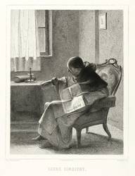 Aus: Vereinsgeschenk des Sächsischen Kunstvereins auf das Jahr ... (Dresden: Sächsischer Kunstverein 1891), Bd. 10. – In der Platte rechts unten gestochene Signatur: "R. Petzsch rad." In der Darstellung rechts unten Signatur des wiedergegebenen Gemäldes: "E. Strecker Wien". Mittig Druckeradresse von Otto Felsing, Berlin. Darunter Titel: "LEERE EINSICHT". – Originalrandiges Exemplar. Sehr guter Zustand.