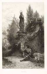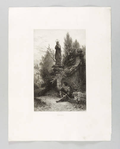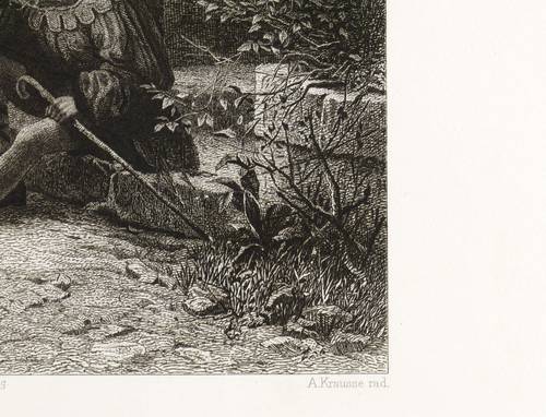 Aus: Vereinsgeschenk des Sächsischen Kunstvereins auf das Jahr .. (Dresden: Sächsischer Kunstverein 1889), Bd. 9. – In der Platte rechts unten gestochene Signatur: "A. Krausse rad." Mittig Druckeradresse von Otto Felsing, Berlin. Darunter Titel. – Leichte Mängel. Im äußeren Rand etwas angestaubt und fleckig. Bisweilen bestoßene Ecken. Sonst guter Zustand.