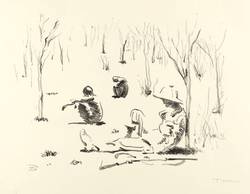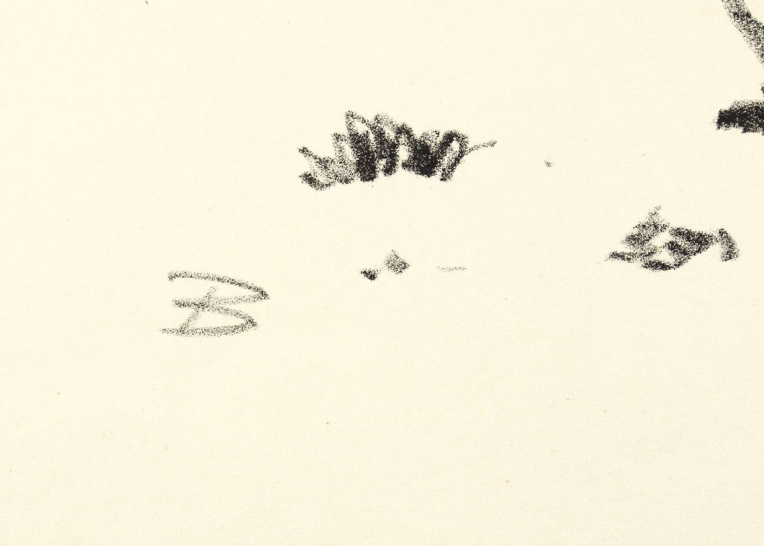Aus: Fritz Behn, Afrikanische Visionen. 14 Lithographien von Fritz Behn (München: Piper 1914). – Rechts unten in Bleistift signiert: ″FBehn″. Im Stein links unten zusätzlich Monogramm. – Originalrandiges unbeschnittenes Exemplar. Papier gegilbt, im Rand etwas knickspurig und minimal stockfleckig. Insgesamt mäßig guter Zustand.