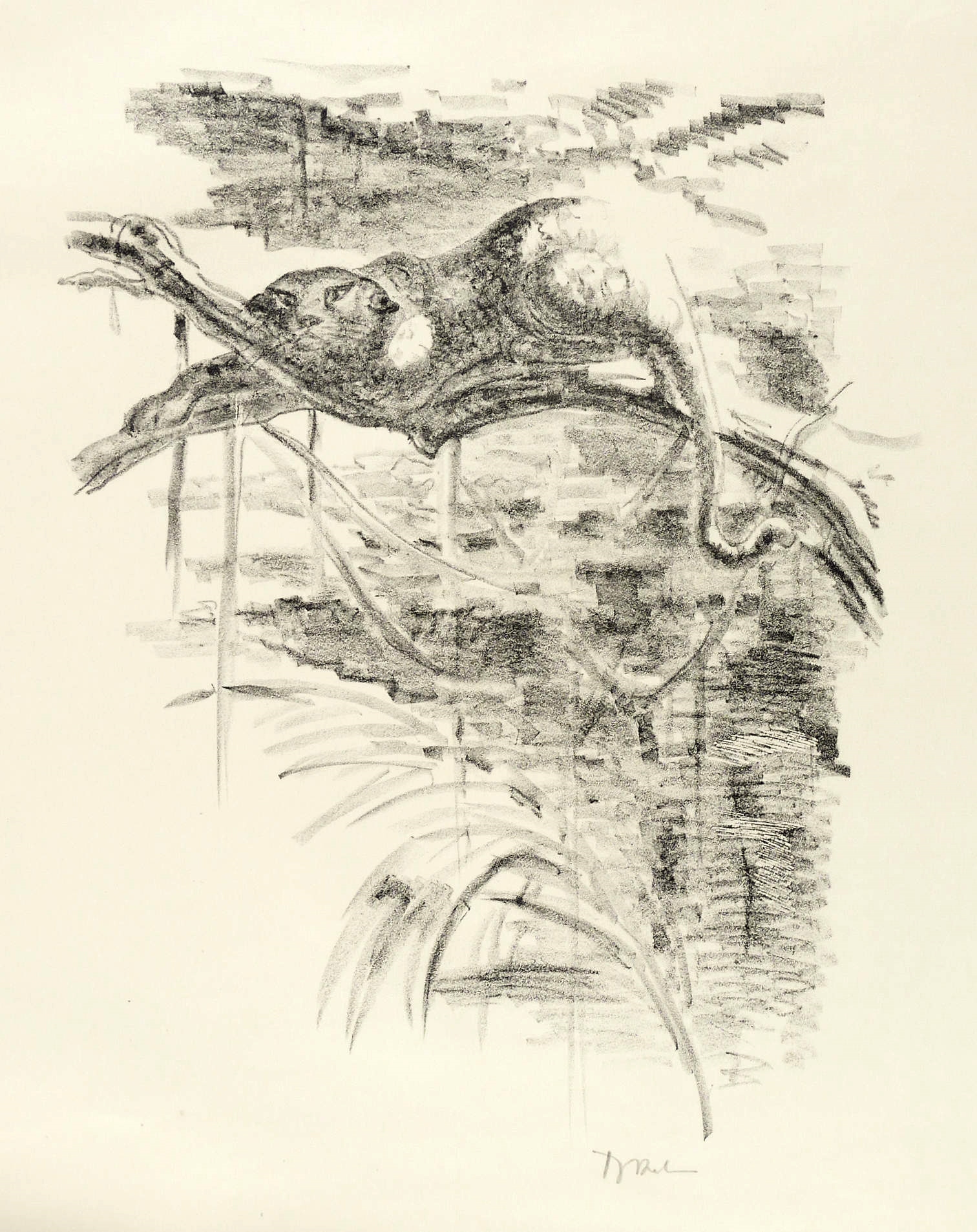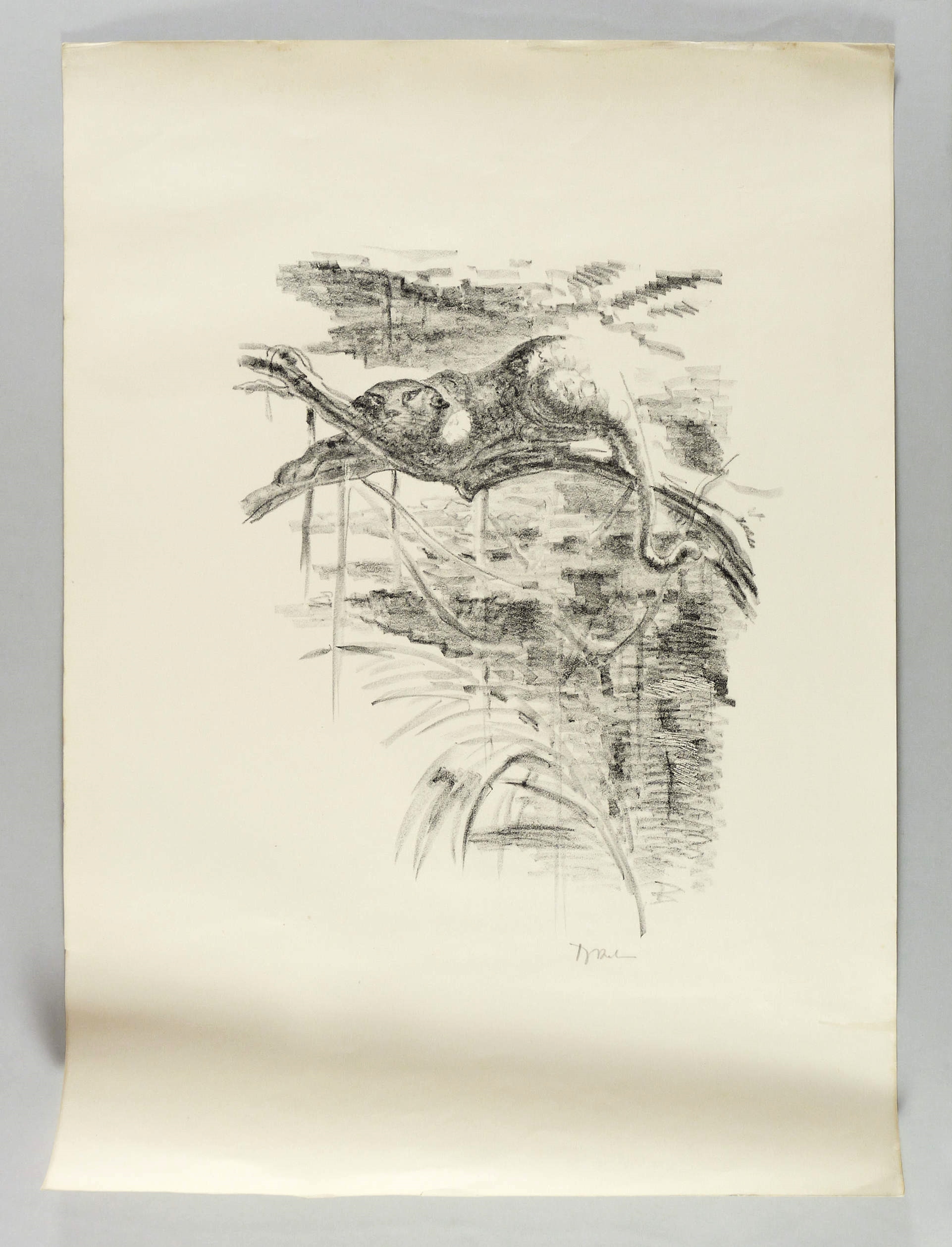 Aus: Fritz Behn, Afrikanische Visionen. 14 Lithographien von Fritz Behn (München: Piper 1914). – Rechts unten in Bleistift signiert: ″FrBehn″. Darüber im Stein nochmals Monogramm. – Originalrandiges unbeschnittenes Exemplar. Papier gegilbt und im Rand etwas knickspurig. Rechts unten etwas fleckig. Insgesamt mäßig guter bis guter Zustand.