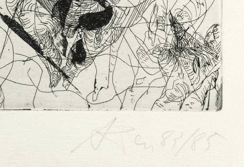 Rechts unten in Bleistift signiert und datiert. Links Auflagenbezeichnung und Titel. Dazu als Zustandsdruck bezeichnet: ″II. Zustand″. – Originalrandiges Exemplar. Leichte Randmängel. Mäßig guter Zustand.