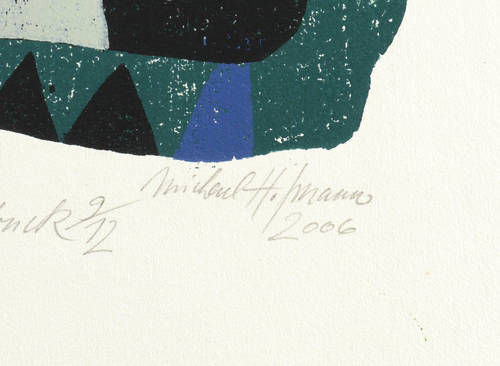 2006. Farbholzschnitt, auf Hahnemühle-Bütten. – Originale Künstlergrafik, von Michael Hofmann. – Auflage Exemplar Nr. 9/12. – 47,0 x 35,0 cm (Darstellung / Druckstock), 78,5 x 54 cm (Blatt).