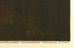 Im Stein rechts unten signiert. Darunter mittig Titel. Rechts unten Verlags- und Druckeradresse der Kunstdruckerei Künstlerbund Karlsruhe (KKK). – Sehr guter Zustand.