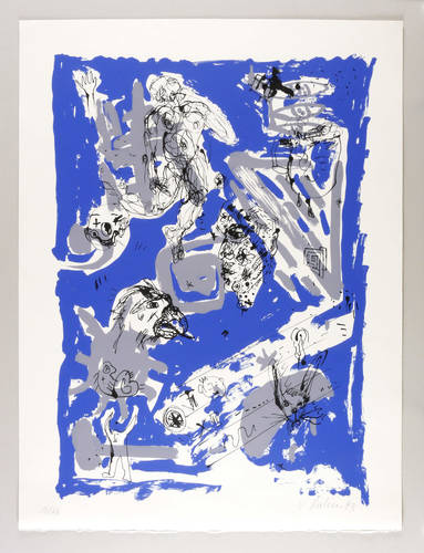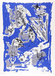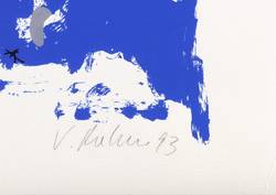 1993. Farbsiebdruck / Farbserigrafie, in BLau, Hellgrau & Schwarz, auf schwerem weißem Velin. – Originale Künstlergrafik, von Volker Mehner. – Auflage Exemplar Nr. 10/66. – 70,6 x 50,6 cm (Darstellung / Druckbild), 80 x 60 cm (Blatt).