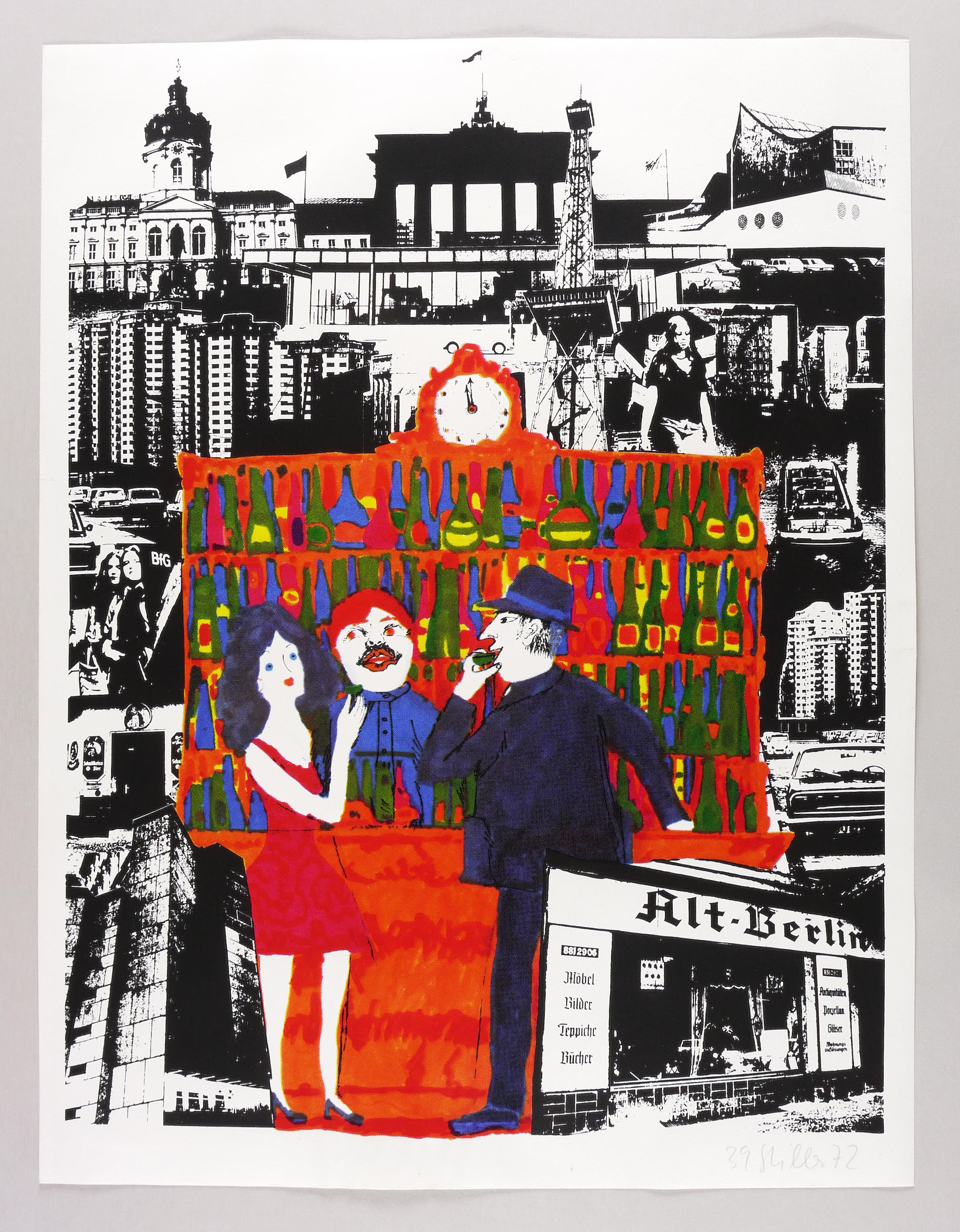 1972. Farbsiebdruck / Farbserigrafie, in 5 Farben, auf glattem hellgelbem Velin. – Originale Künstlergrafik, von Günther Stiller. – Auflage Exemplar Nr. 39/40. – 56,9 x 42,8 cm (Darstellung), 60 x 46 cm (Blatt).