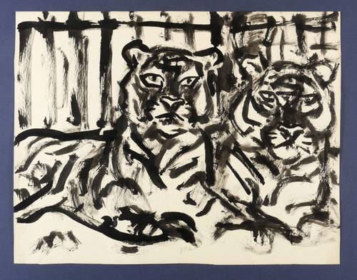 1950-1960. Zeichnung / Pinselzeichnung, in schwarzer Tusche, auf Karton. – Originale Künstlergrafik, von Fritz Winkler. – Unikat. – 49,0 x 63,2 cm (Darstellung / Blatt).