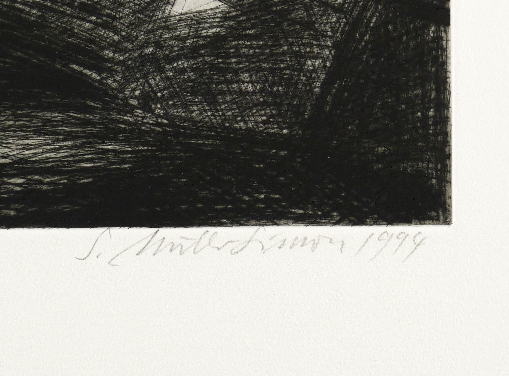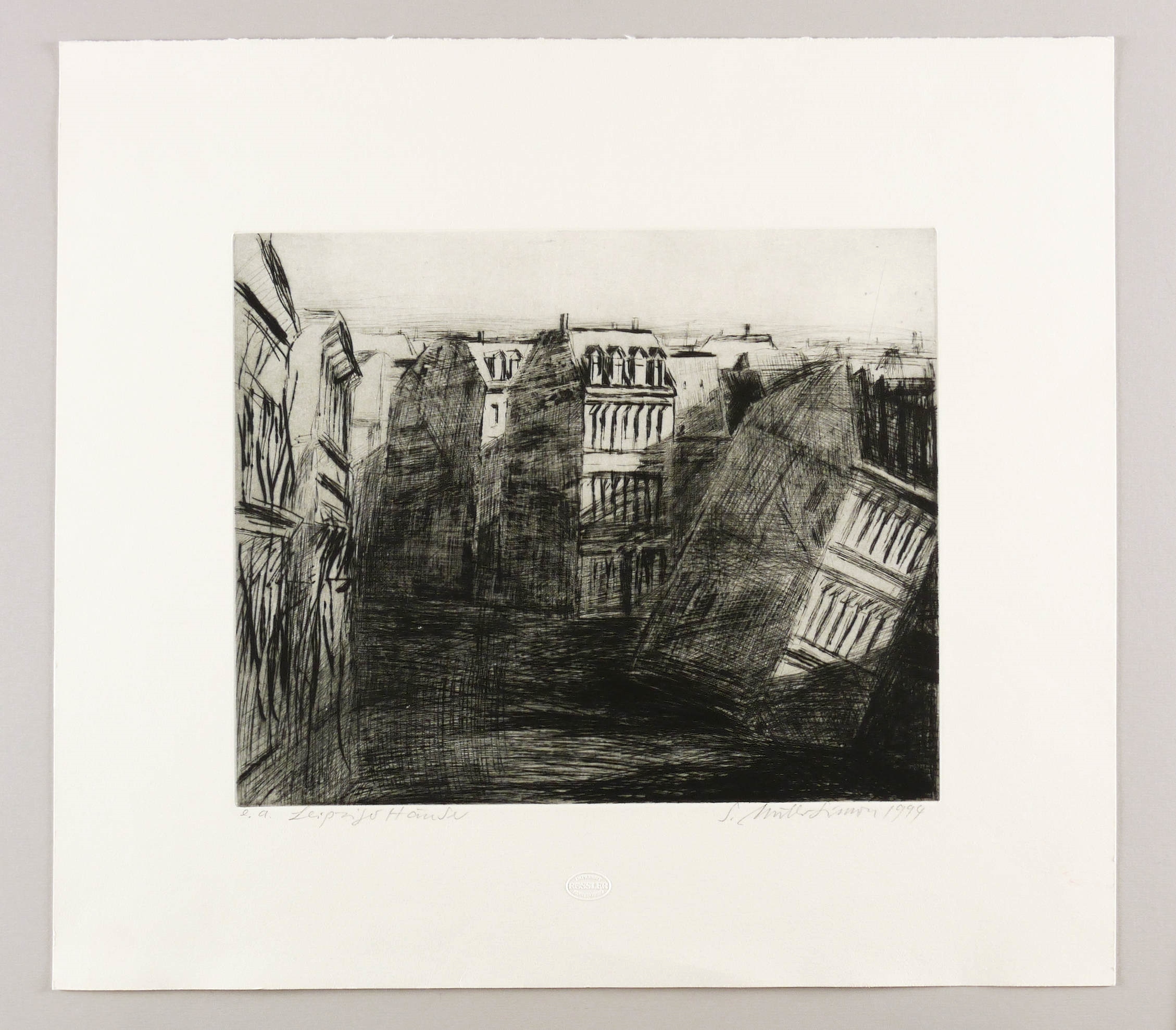 1994. Radierung / Kaltnadel, in Schwarz, mit Plattenton, auf schwerem hellgelbem Bütten. – Von Gerald Müller-Simon. – Künstlerexemplar (e.a.). – 32,7 x 39,9 cm (Darstellung / Platte), 54 x 60 cm (Blatt).