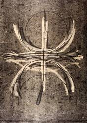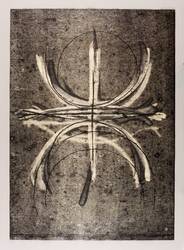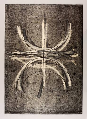 1985. Mischtechnik / Feder, Tusche & Bleistift, über Monotypie in Schwarz, auf leichtem Werkpapier. – Originale Künstlergrafik, von Klaus Dennhardt. – Unikat. – 70,0 x 50,0 cm (Darstellung / Blatt).