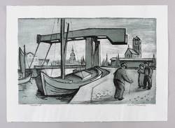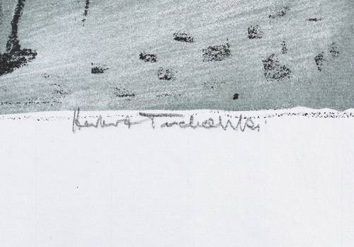 1958. Farblithografie / Kreidelithografie, in Blaugrau & Schwarz, auf leichtem hellgelbem Velin. – Originale Künstlergrafik, von Herbert Tucholski. – 31,0 x 49,5 cm (Darstellung / Druckbild), 42 x 58 cm (Blatt).