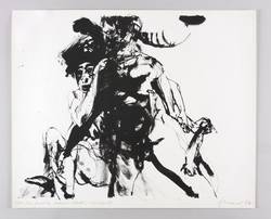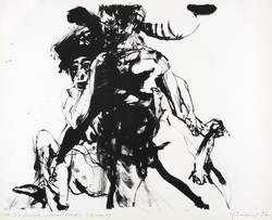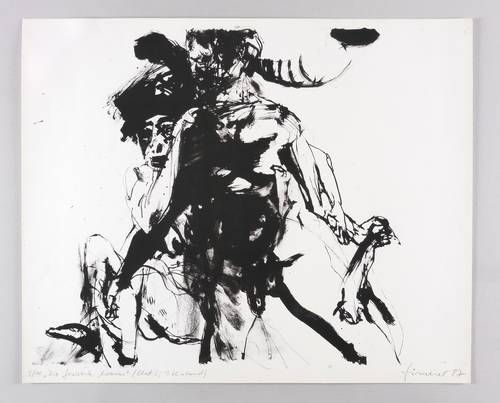 1987. Farbalgrafie / Kreide- & Pinselalgrafie, in Schwarz, auf glattem weißem Velinkarton. – Originale Künstlergrafik, von Steffen Fischer. – Auflage Exemplar Nr. 3/10. – 52,7 x 61,2 cm (Darstellung / Druckbild), 57 x 69 cm (Blatt).