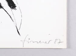 Rechts unten in Bleistift signiert und datiert: ″fischer 87″. Links Auflagenbezeichnung und Titel: ″3/10 / Die Gesichte Adams (Blatt 3, 1. Zustand)″. – Links oben rückseitig ausgedünnter und fachgerecht restaurierte Partie. Sonst tadellos. Mäßig guter Zustand.