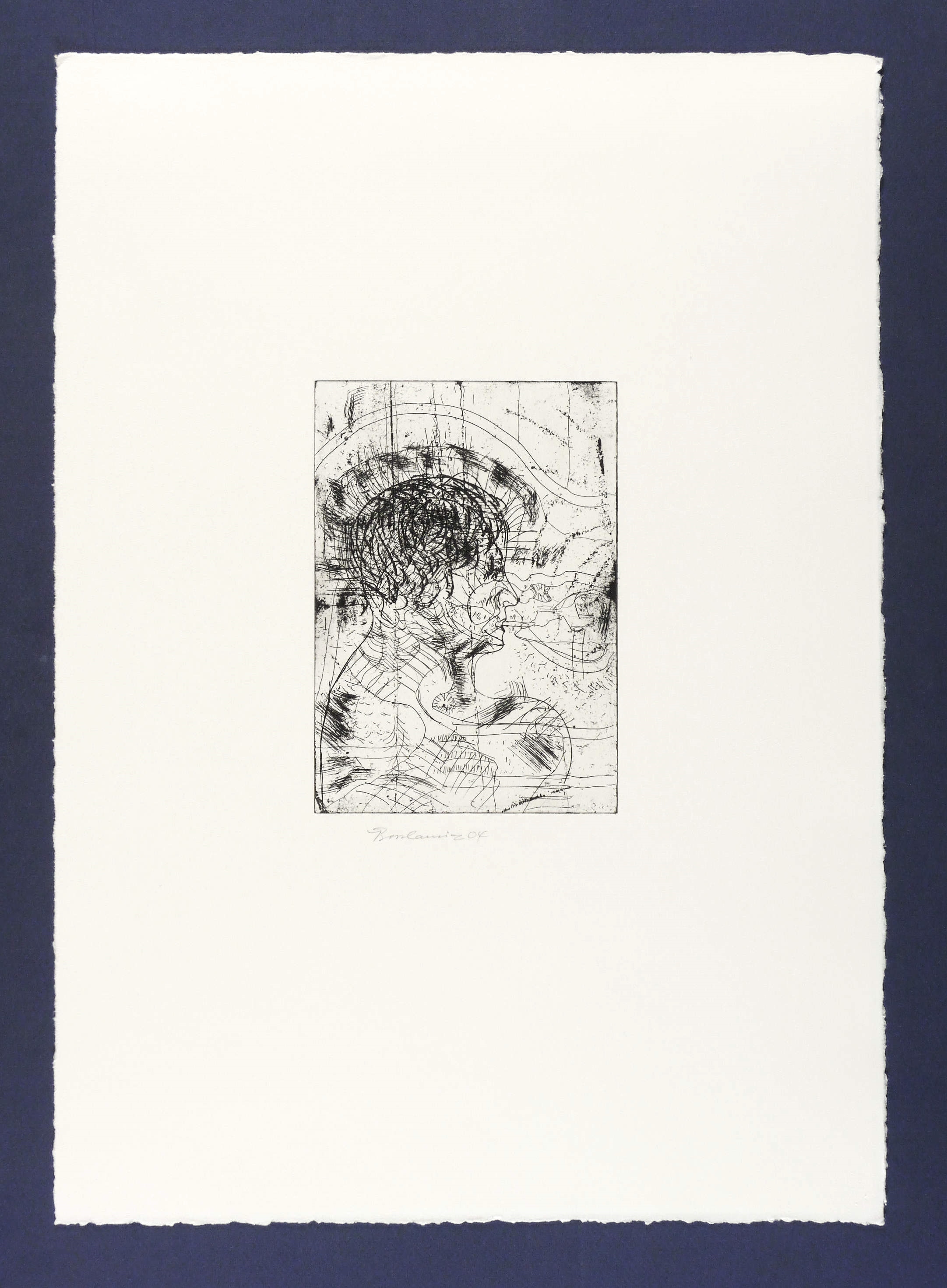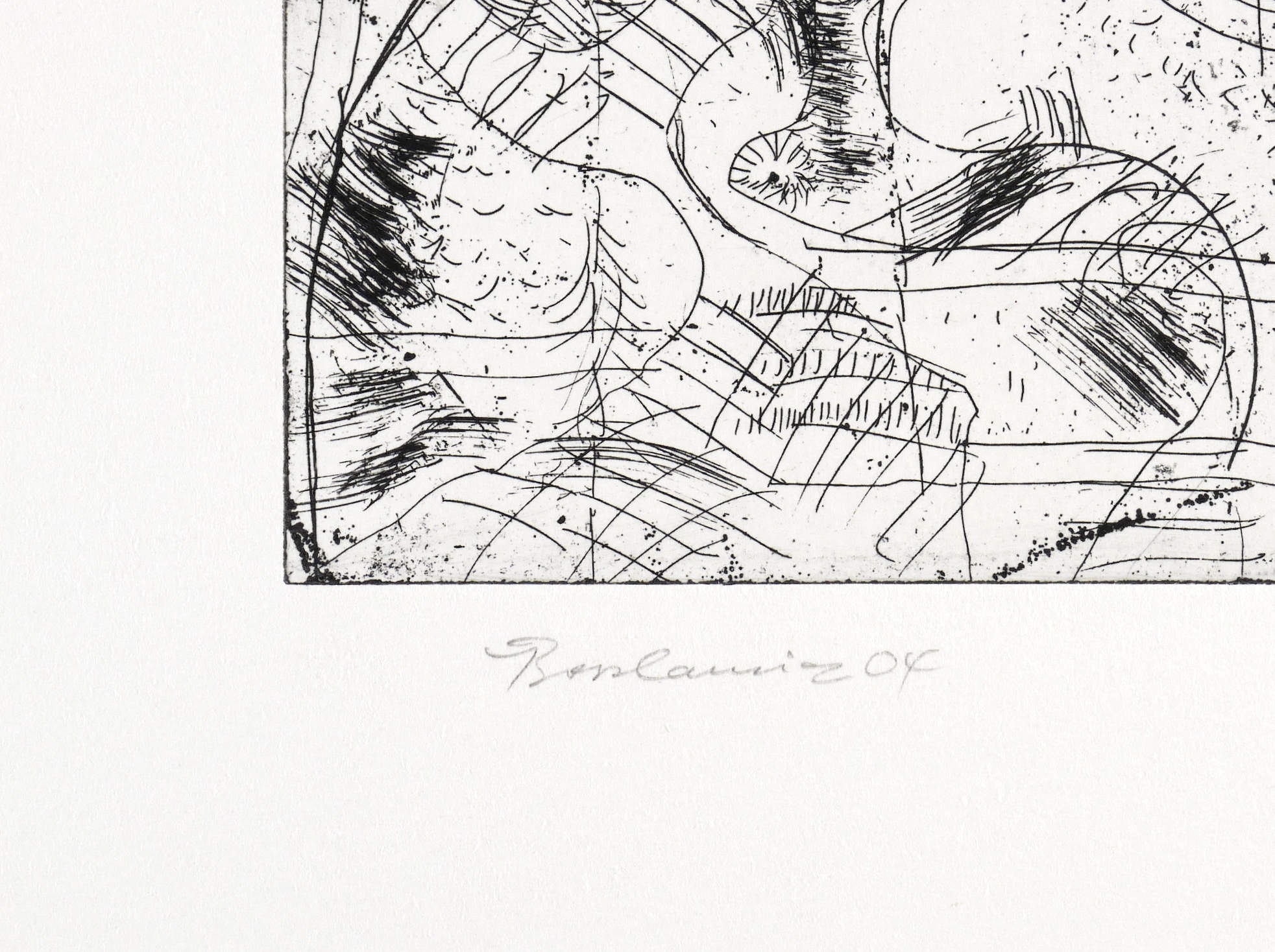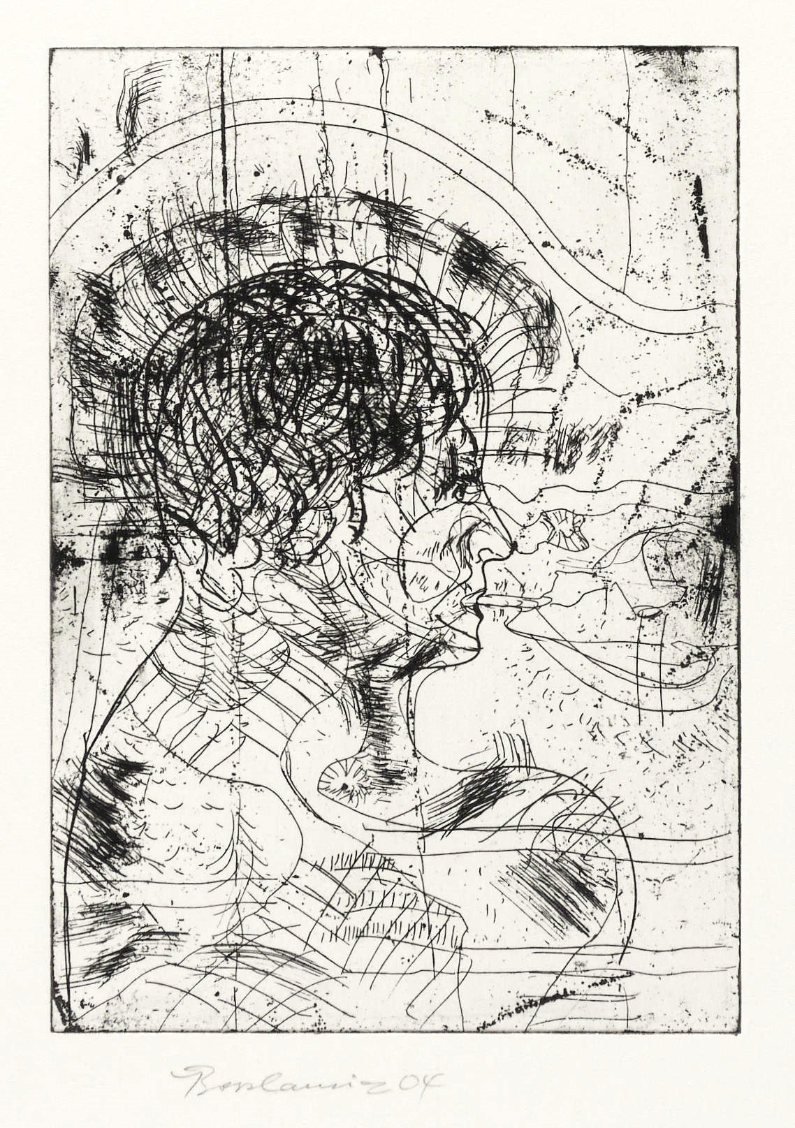 2004. Radierung / Strichätzung, in Schwarz, auf hellem Zerkall-Bütten. – Originale Künstlergrafik, von Jürgen Bordanowicz. – 19,8 x 13,9 cm (Darstellung / Platte), 54 x 38 cm (Blatt).
