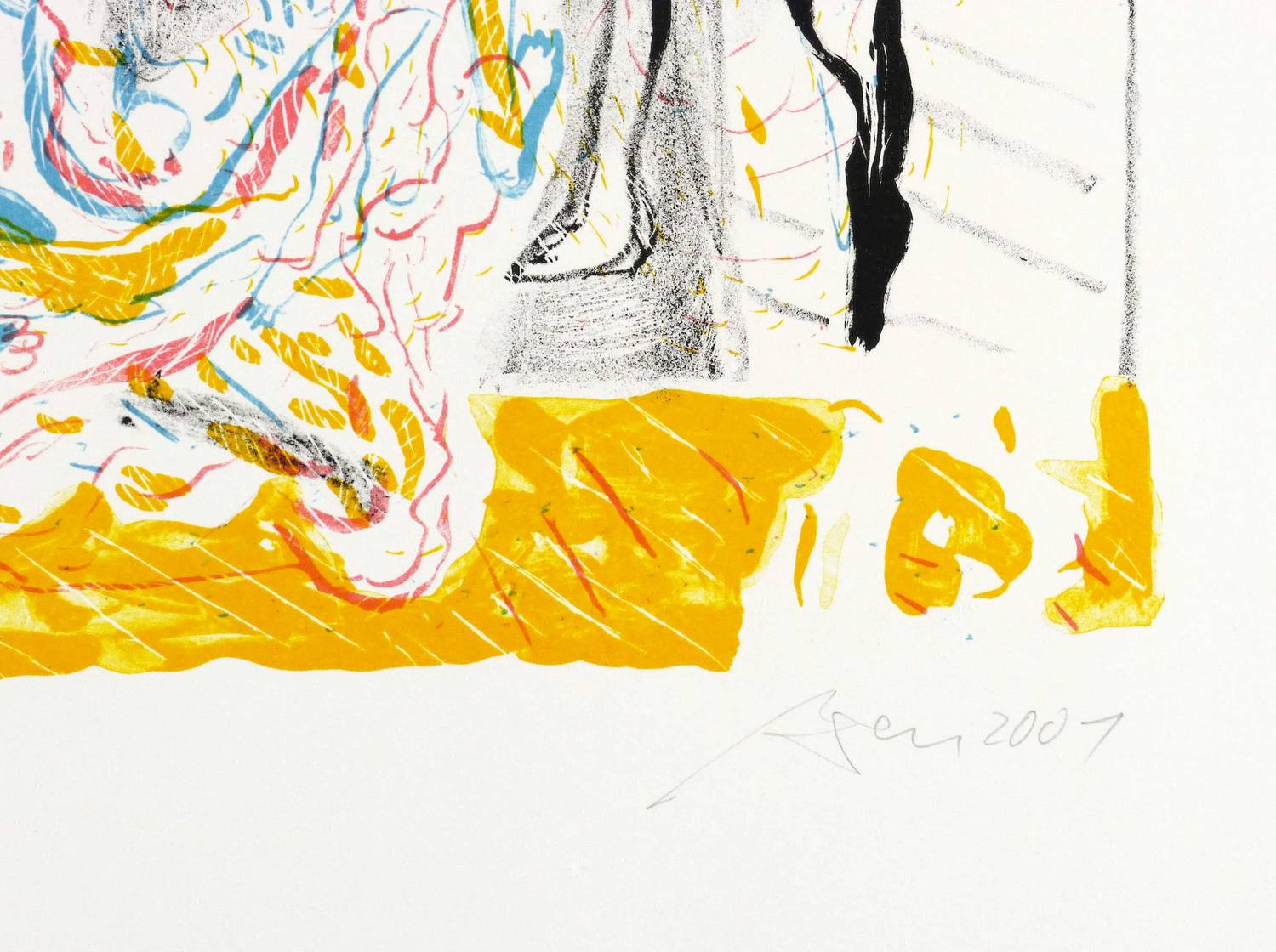 2001. Farblithografie / Kreide- & Pinsellithografie, in 5 Farben, auf weißem Velinkarton. – Originale Künstlergrafik, von Andreas Dress. – Auflage Exemplar Nr. 136/250. – 34,7 x 31,5 cm (Darstellung / Druckbild), 59 x 42 cm (Blatt).