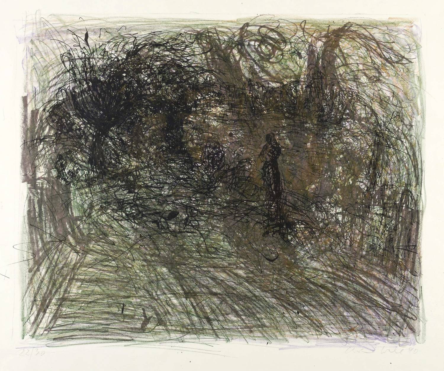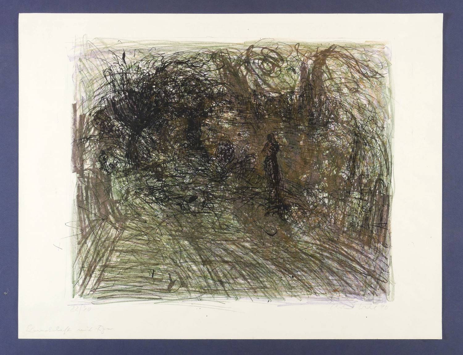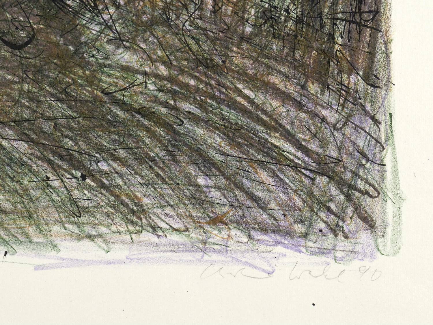 1990. Farbzinkografie / Kreide- & Pinselzinkografie, in 5 Farben, auf Karton. – Originale Künstlergrafik, von Christine Wahl. – Auflage Exemplar Nr. 22/30. – 41,5 x 50,5 cm (Darstellung / Druckbild), 50 x 65 cm (Blatt).