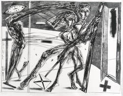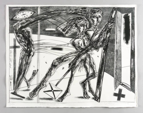 1988. Lithografie / Kreide- & Pinsellithografie, in Schwarz, auf schwerem hellchamois Bütten. – Originale Künstlergrafik, von Steffen Volmer. – Auflage Exemplar Nr. 17/20. – 50,5 x 66,1 cm (Darstellung / Druckbild), 54 x 68 cm (Blatt).