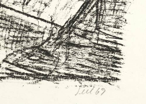 1969. Lithografie / Kreidelithografie, in Schwarz, auf hellgelbem Velin. – Originale Künstlergrafik, von Lothar Sell. – 38,0 x 53,5 cm (Darstellung), 51 x 67 cm (Blatt).