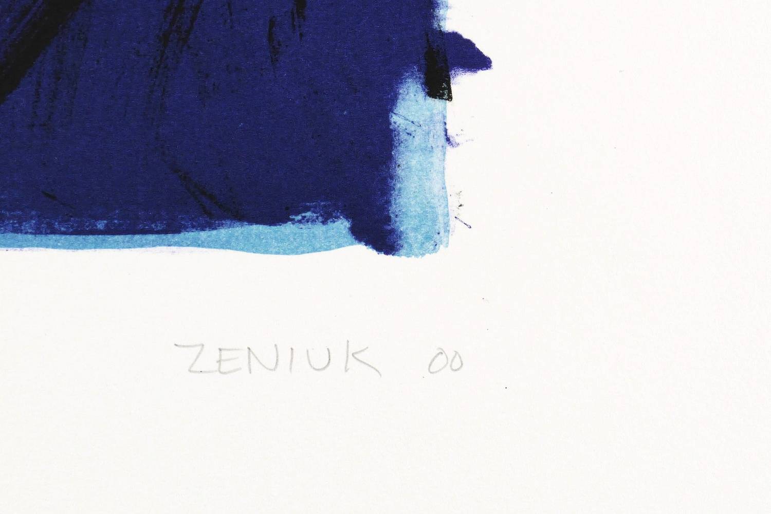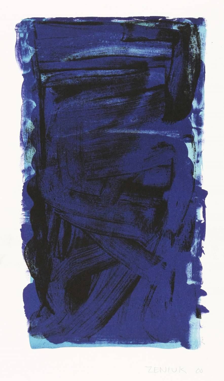 2000. Farblithografie / Pinsellithografie, in 3 Farben, auf weißem BFK-Rives-Bütten. – erg, von Jerry Zeniuk. – 39,1 x 22,6 cm (Darstellung / Platte), 66 x 51 cm (Blatt).