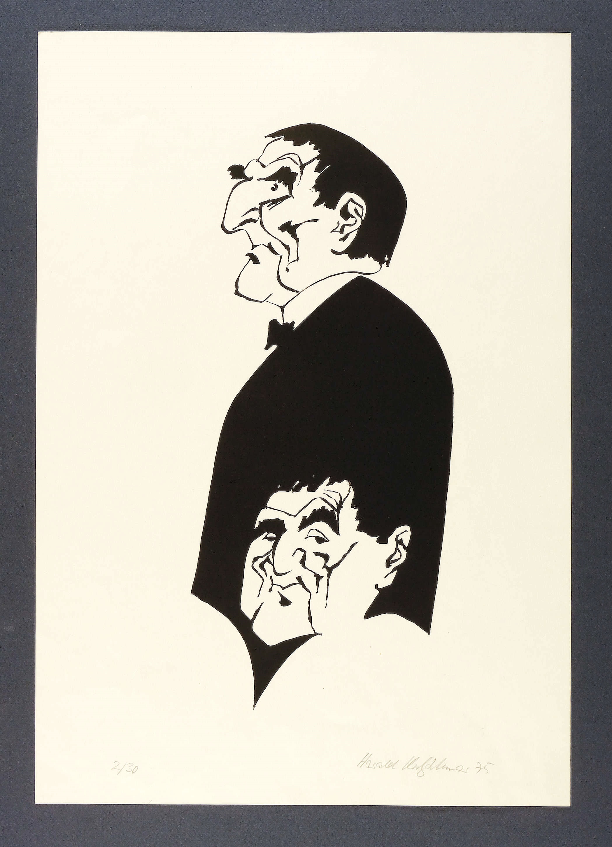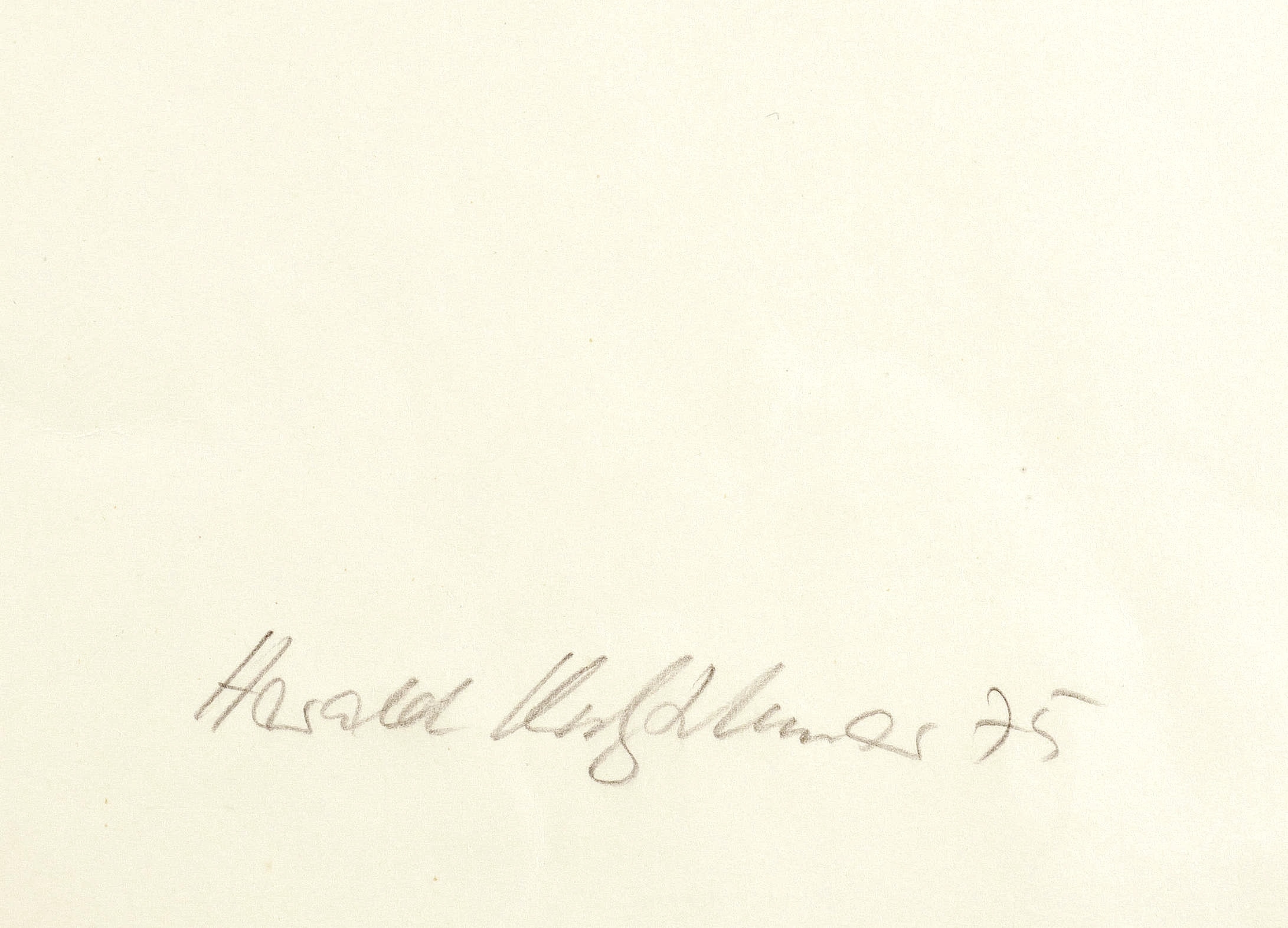 1975. Lithografie / Pinsellithografie, in Schwarz, auf hellgelbem Karton. – Originale Künstlergrafik, von Harald Kretzschmar. – Auflage Exemplar Nr. 2/30. – 38,2 x 16,9 cm (Darstellung), 50 x 35 cm (Blatt).