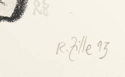 Rainer Zille (1945 Merseburg - 2005 Saaldorf). Deutscher Maler und Grafiker. 1967-72 Studium der Malerei an der Hochschule für Bildende Künste Dresden (HfBK) bei Gerhard Kettner, Herbert Kunze und Franz Tippel. Seit 1972 freischaffend in Dresden tätig. Gemeinsam mit seinen Malerfreunden Helge Leiberg, Joachim Böttcher, Stefan Plenkers, Veit Hofmann und anderen bestimmte er das Bild der Dresdner Kunst in den 1970er Jahren maßgeblich mit. 2003 Bautzener Kunstpreis. 2004 Umzug nach Saaldorf. Werke sind u.a. in den ständigen Ausstellungen der Städtischen Galerie Dresden und der Kunstsammlung Neubrandenburg vertreten.