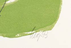 1993. Farbsiebdruck / Farbserigrafie, in Grün & Schwarz, auf Karton. – Originale Künstlergrafik, von Olaf Wegewitz. – Auflage Exemplar Nr. 183/200. – 40,5 x 26,2 cm (Darstellung), 50 x 42 cm (Blatt).