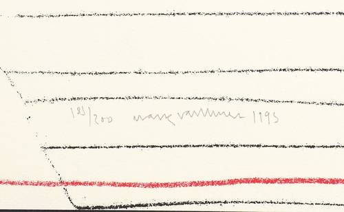 1993. Farbsiebdruck / Farbserigrafie, in Rot & Schwarz, auf hellem Karton. – Originale Künstlergrafik, von Mark Lammert. – Auflage Exemplar Nr. 183/200. – 51,0 x 42,0 cm (Darstellung / Blatt).