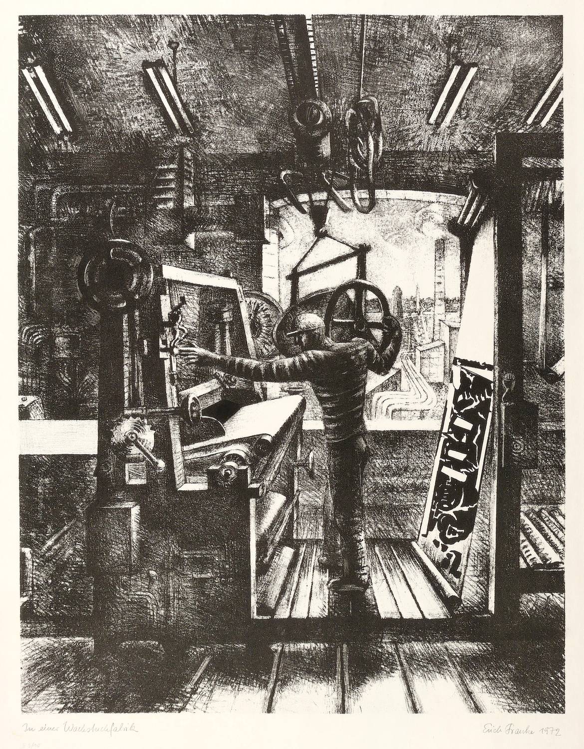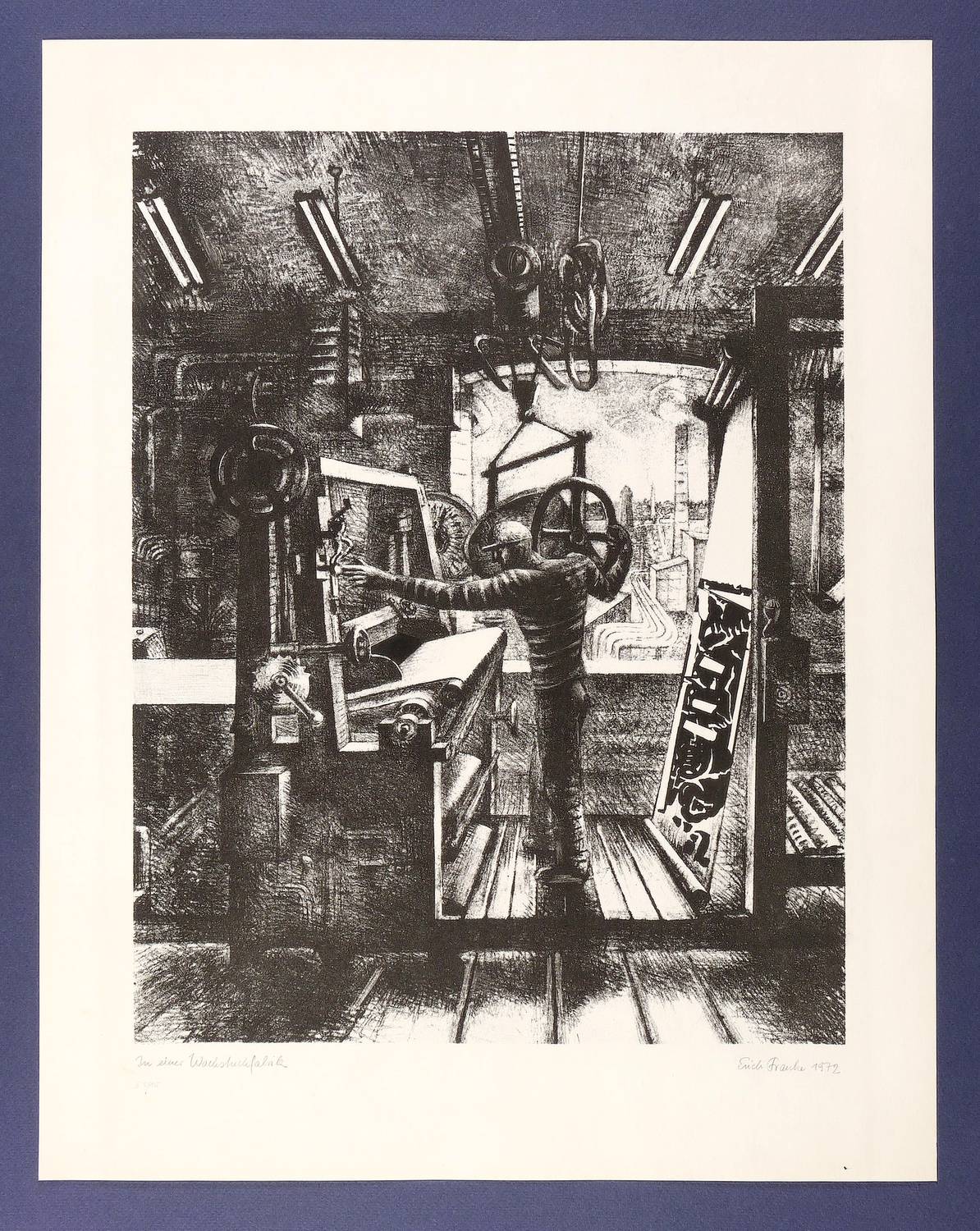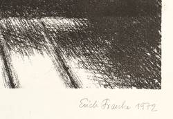 1972. Lithografie / Kreidelithografie, in Schwarz, auf hellchamois Velin. – Originale Künstlergrafik, von Erich Franke. – Auflage Exemplar Nr. 5/10. – 40,1 x 31,3 cm (Darstellung), 50 x 39 cm (Blatt).