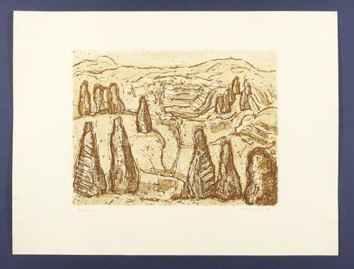 1976. Radierung / Strichätzung & Reservage, in Braun, auf hellem Weißenborn. – Originale Künstlergrafik, von Friedrich B. Henkel. – Auflage Exemplar Nr. 79/100. – 23,7 x 31,8 cm (Darstellung / Platte), 38 x 50 cm (Blatt).