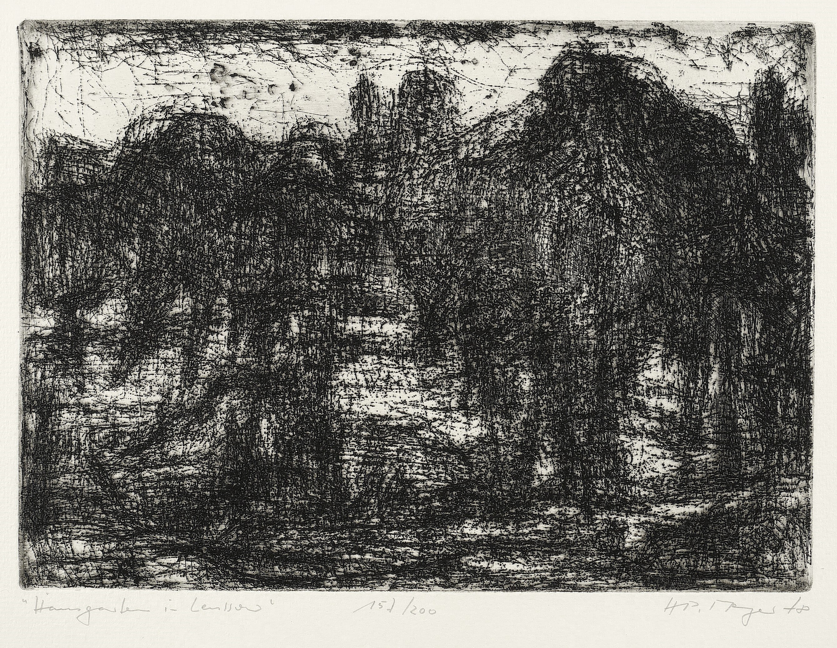 1978. Radierung / Strichätzung & Reservage, in Schwarz, auf hellgelbem Velin. – Originale Künstlergrafik, von Horst-Peter Meyer. – Auflage Exemplar Nr. 157/200. – 21,2 x 29,5 cm (Darstellung / Platte), 37 x 36 cm (Blatt).