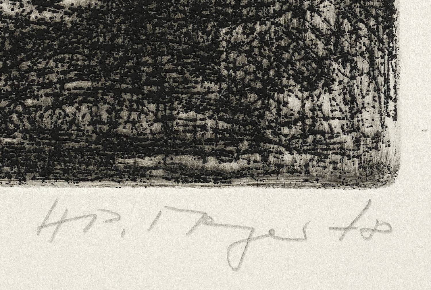 Rechts unten in Bleistift signiert und datiert. Links Titel und Auflagenbezeichnung. – Papier am unteren Blattrand etwas angeschmutzt. Insgesamt noch gut erhalten.