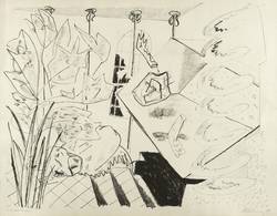 1983. Lithografie / Kreidelithografie, in Schwarz, auf hartem hellchamois Velin. – Originale Künstlergrafik, von Helge Leiberg. – 45,0 x 59,0 cm (Darstellung / Druckbild), 50 x 63 cm (Blatt).
