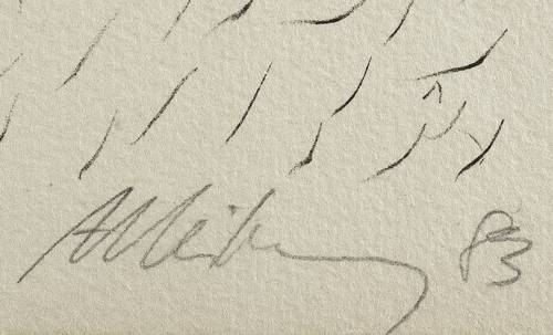Rechts unten in Bleistift signiert und datiert. – Papier etwas gegilbt, lichtrandig. Blattrand etwas knickspurig. Verso Reste einer ehemaligen Montierung. Die Kanten etwas bestoßen. Reißzwecklöchlein. Mäßig guter Zustand.