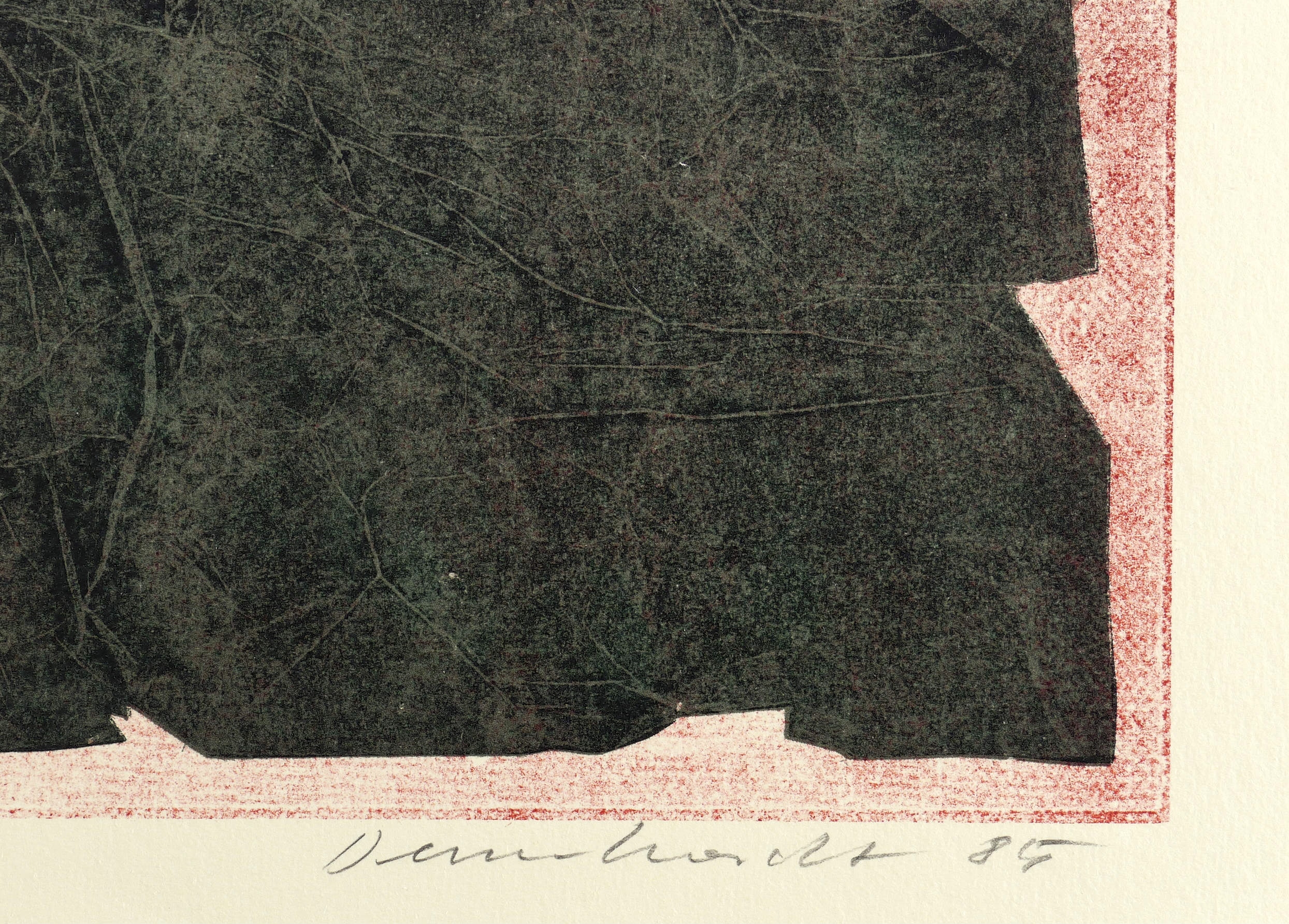 1985. Farbsiebdruck / Farbserigrafie, in Rot & Schwarz, auf gelbem Velin. – Originale Künstlergrafik, von Klaus Dennhardt. – Auflage Exemplar Nr. 1/150. – 55,8 x 40,2 cm (Darstellung), 59 x 44 cm (Blatt).