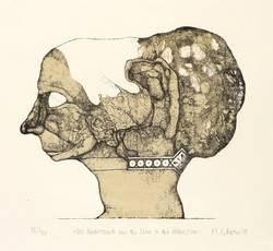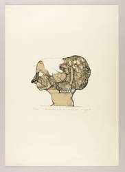 1964. Farblithografie / Feder- & Pinsellithografie, in Ocker & Schwarz, partiell punktiert, auf chamois Velin. – Originale Künstlergrafik, von Reiner Schwarz. – Auflage Exemplar Nr. 93/100. – 18,9 x 21,9 cm (Darstellung / Druckbild), 60 x 42 cm (Blatt).