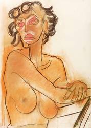 1960-1970. Zeichnung / Kohle & Farbkreide, auf gelbem Velinkarton. – Originale Künstlergrafik, von Franziskus Dellgruen. – Unikat. – 75,5 x 56,0 cm (Darstellung / Blatt).