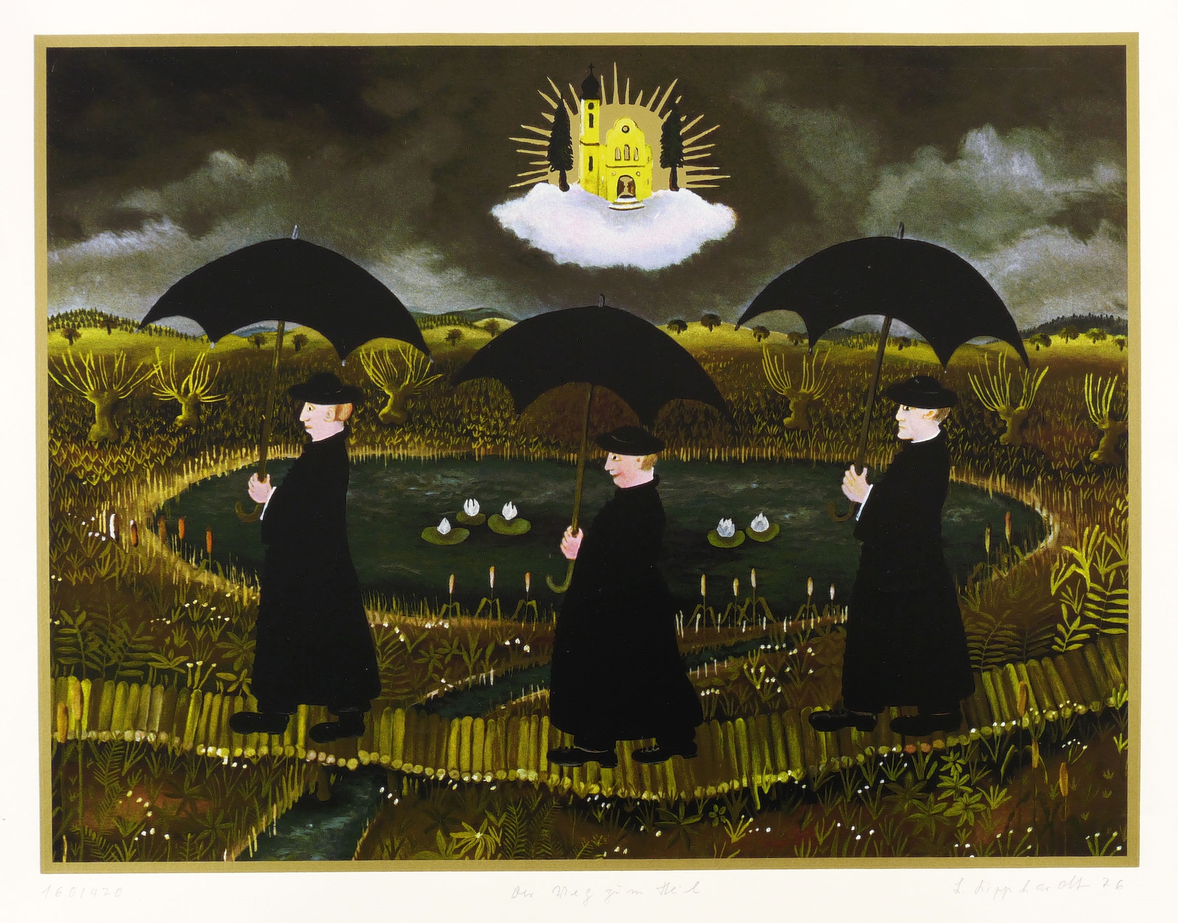 Lore Kipphardt (tätig 2. Hälfte 20. Jh. in München). Geborene Lore Hannen. Deutsche Malerin und Grafikerin. Vertreterin der Naiven Kunst im Nachkreigsdeutschland. 1943 Heirat mit dem Schriftsteller Heinar Kipphardt. Illustrationen und naive Malerei.