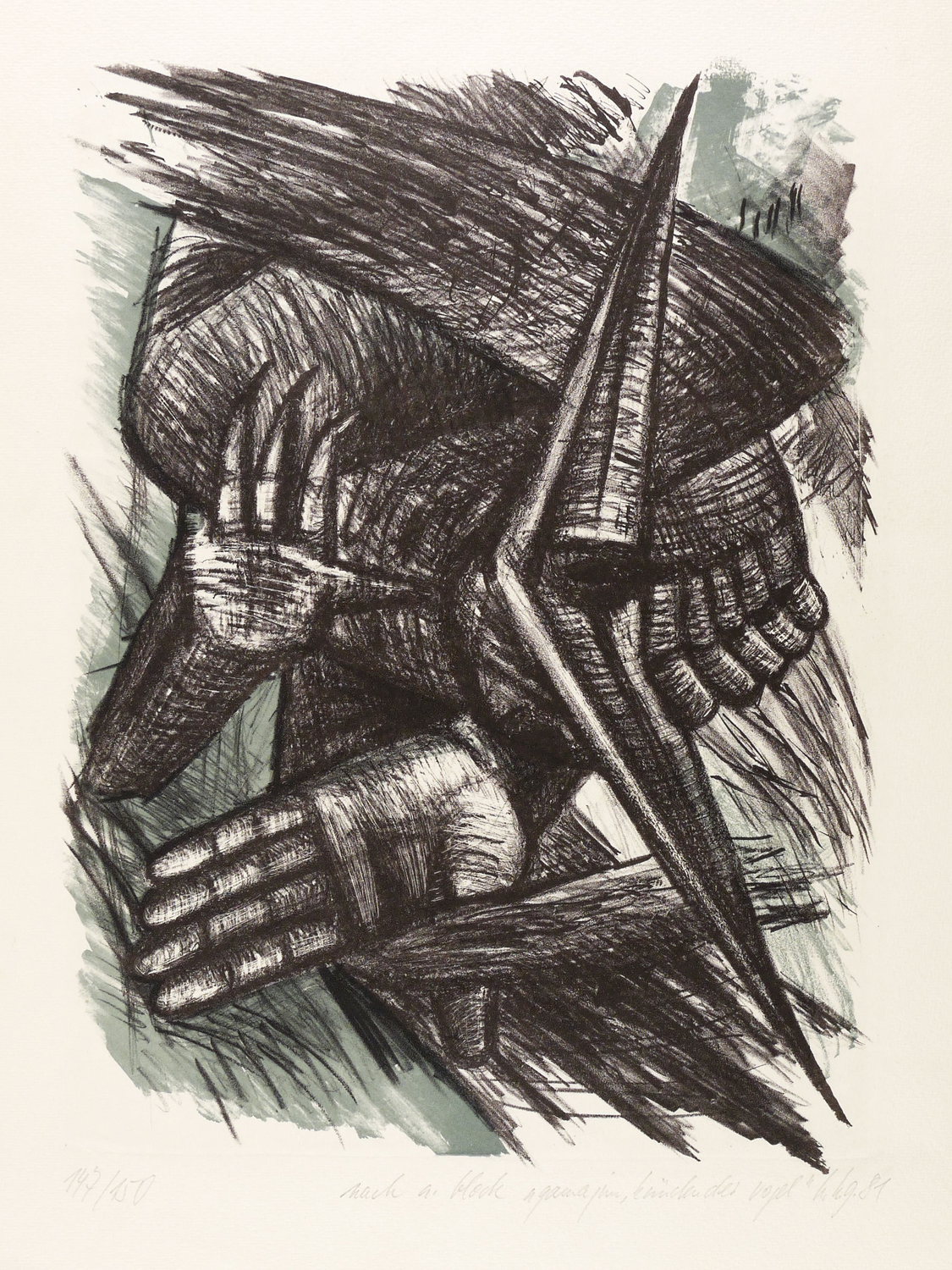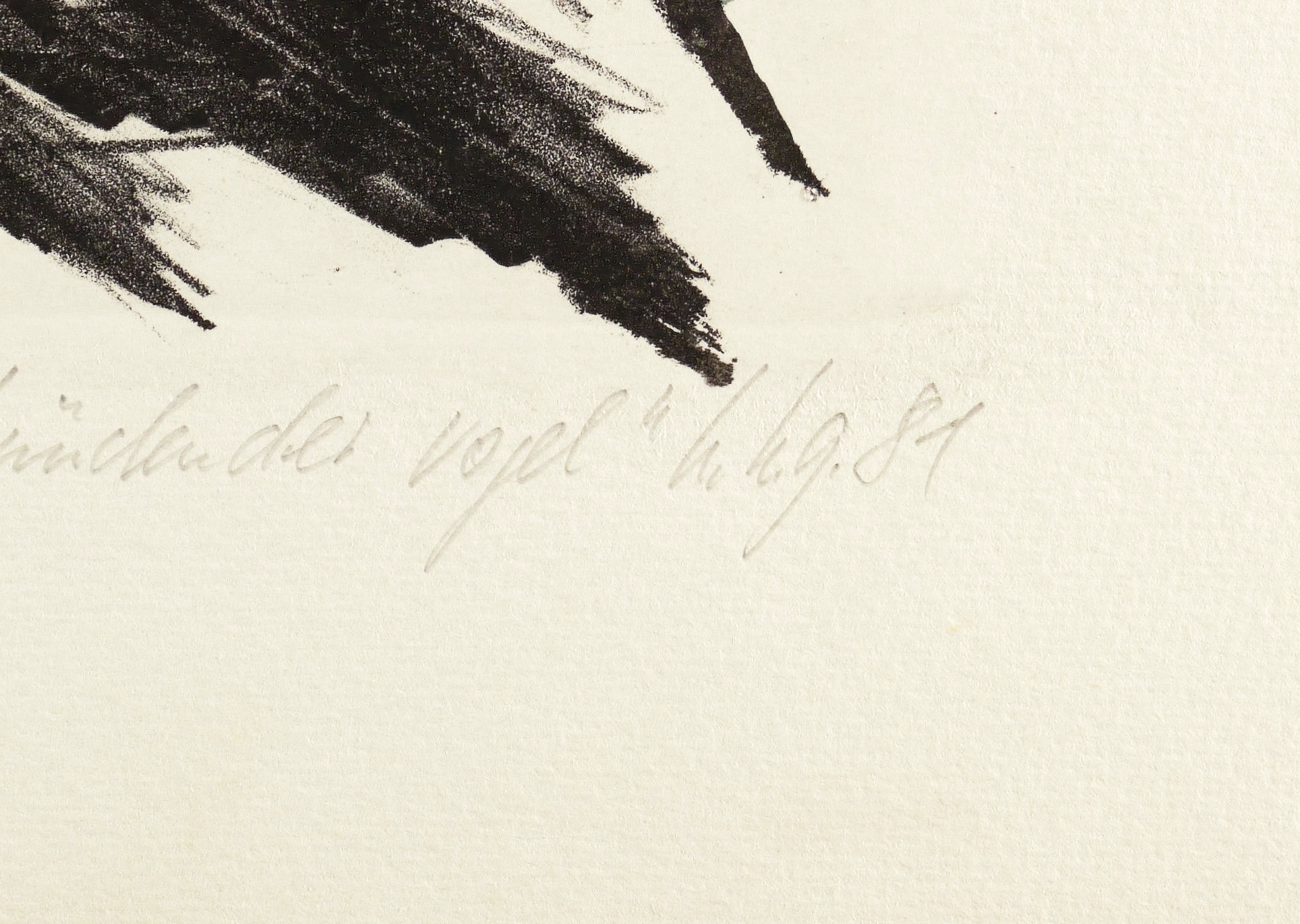 Rechts unten in Bleistift signiert und datiert: ″h.h.g. 81″. Links eigenhändige Auflagenbezeichnung und Titel. Trockenstempel Grafik-Edition. – Rand in der linken unteren Ecke mit leichten Knickspuren. Sonst tadellos. Mäßig gut erhalten.