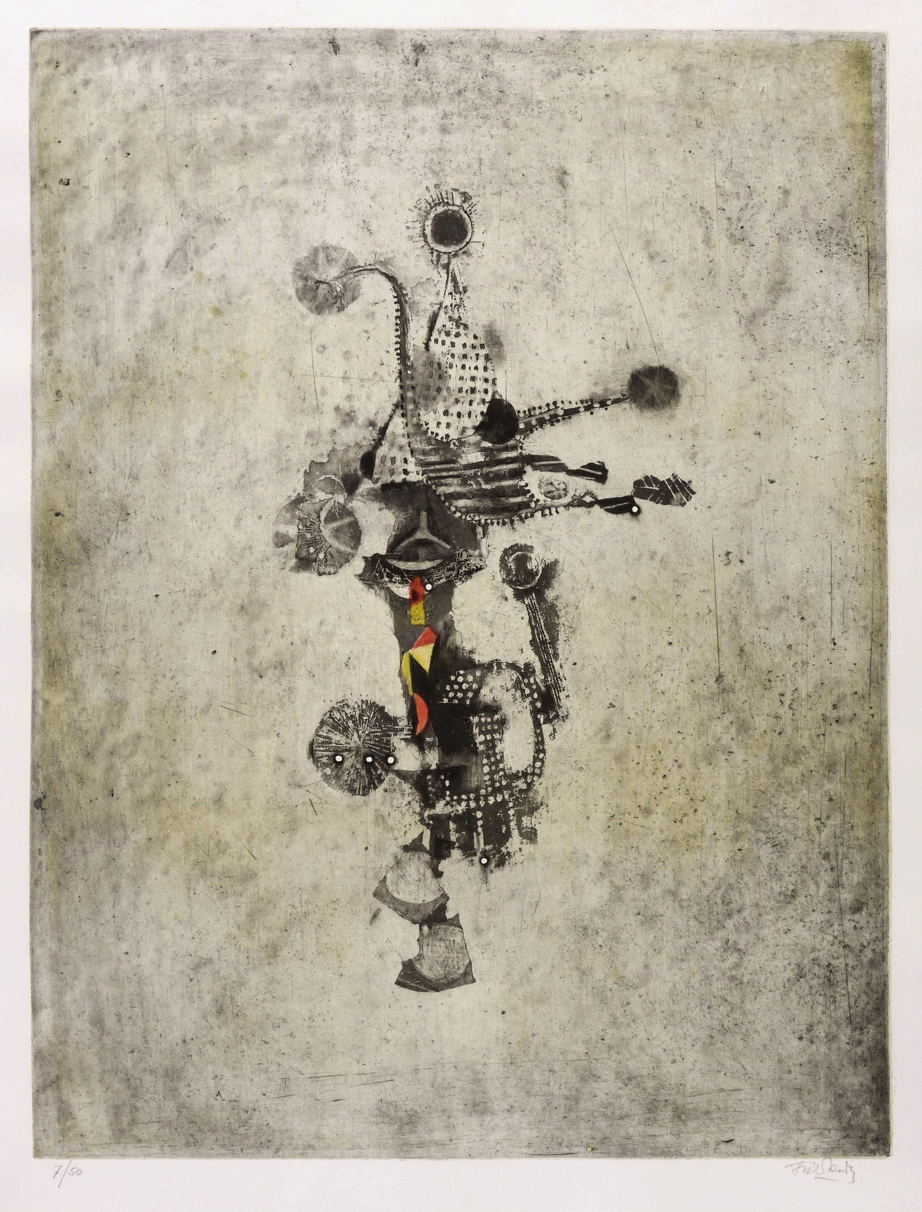 1958. Farbradierung / Aquatinta, in 4 Farben, auf festem hellchamois BFK-Rives. – Originale Künstlergrafik, von Johnny Friedländer. – Auflage Exemplar Nr. 7/50. – 58,4 x 44,7 cm (Darstellung / Platte), 67 x 51 cm (Blatt).