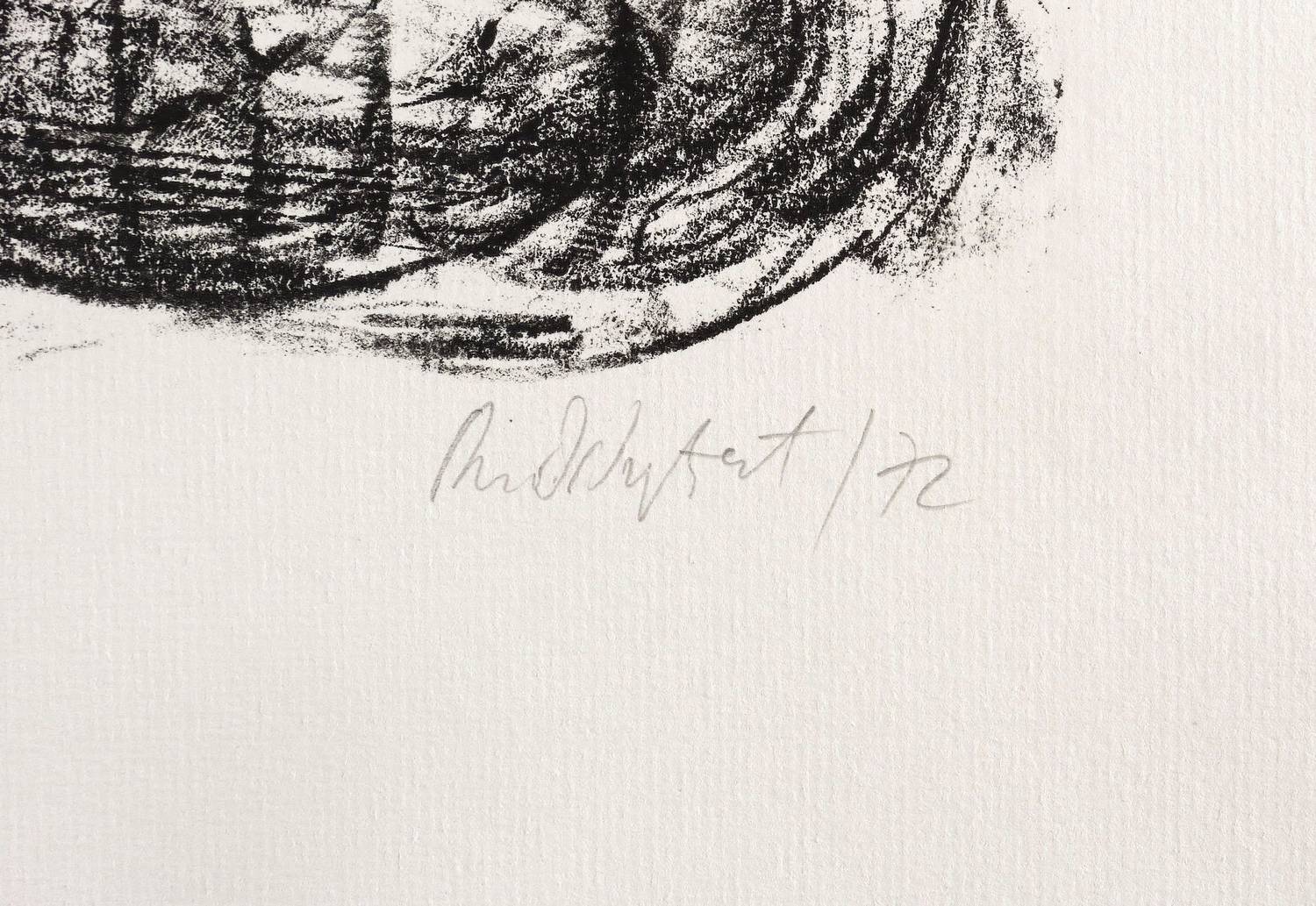 1972. Lithografie / Kreidelithografie, in Schwarz, auf hartem hellchamois Maschinenbütten. – Originale Künstlergrafik, von Frank Ruddigkeit. – Auflage Exemplar Nr. 15/20. – 52,6 x 39,7 cm (Darstellung / Platte), 71 x 50 cm (Blatt).