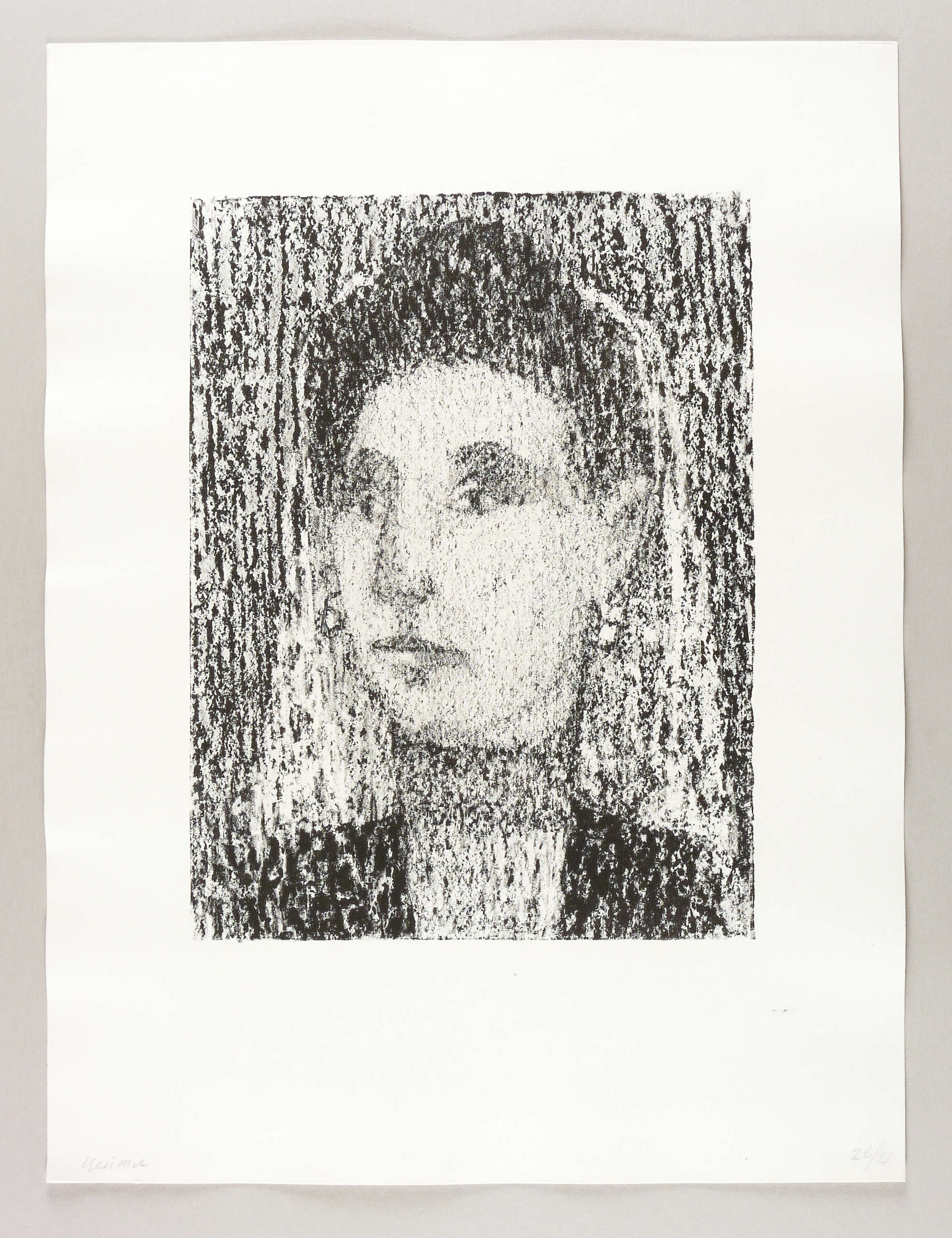1957-1960. Lithografie / Kreidelithografie, partiell gewischt, in Schwarz, auf weichem rauem Velin. – Originale Künstlergrafik, von Anatoli Kaplan. – 40,6 x 30,5 cm (Darstellung / Druckbild), 62 x 47 cm (Blatt).