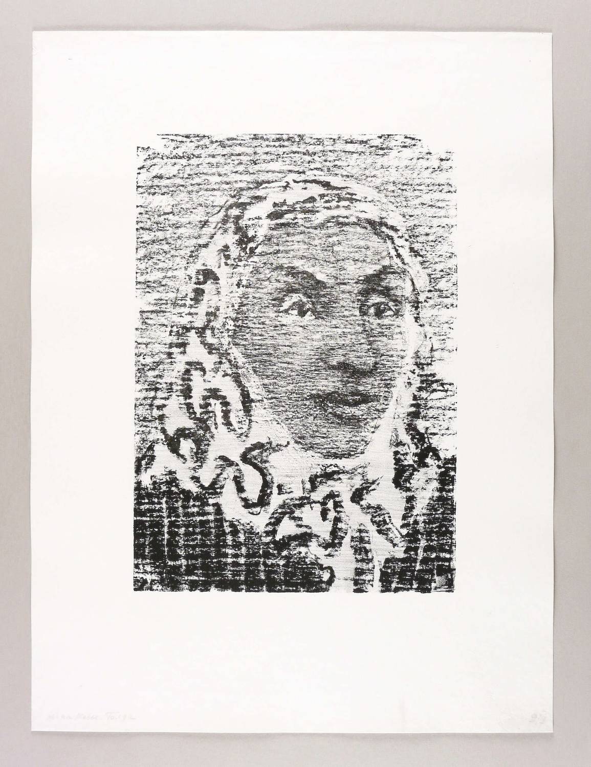 1957-1960. Lithografie / Kreidelithografie, partiell gewischt, in Schwarz, auf weichem rauem Velin. – Originale Künstlergrafik, von Anatoli Kaplan. – 41,0 x 28,8 cm (Darstellung / Druckbild), 63 x 47 cm (Blatt).