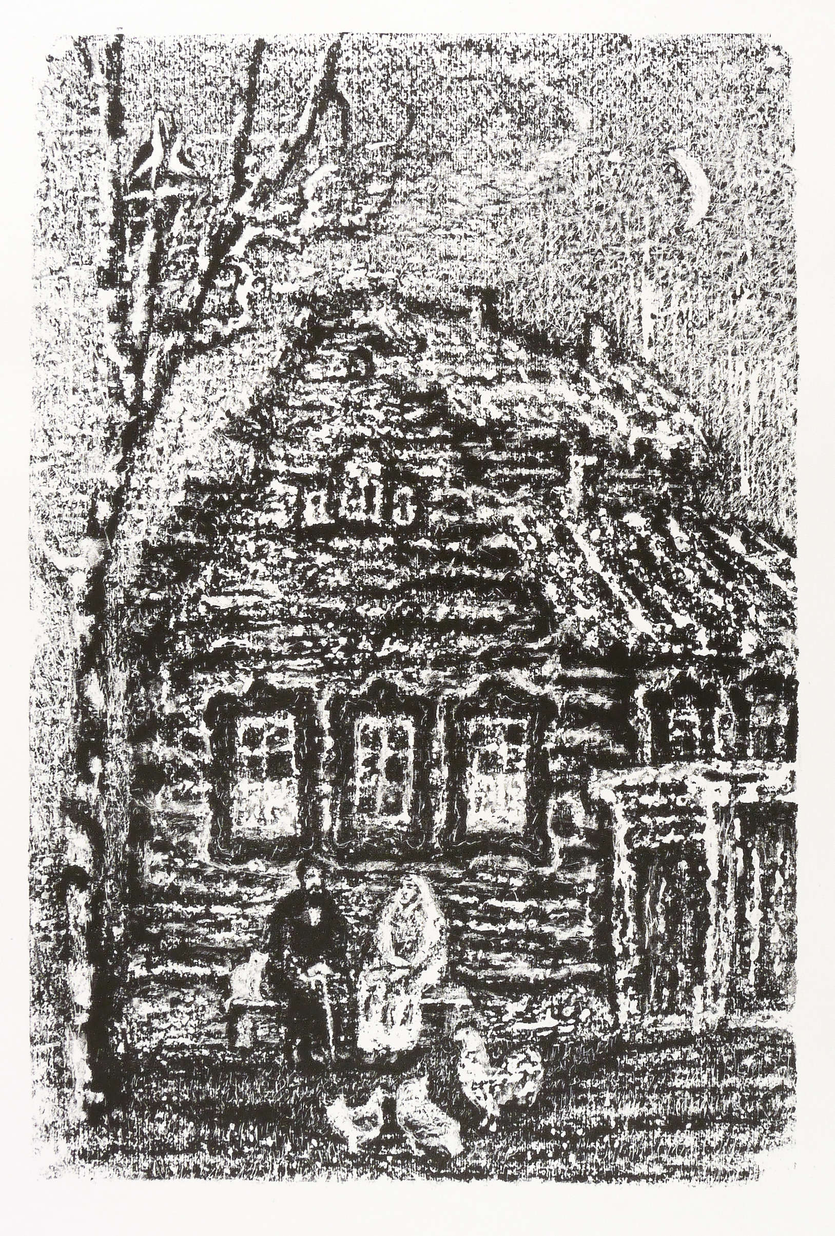 Mayer-Strodt V 7. – Unsigniert. Links unten in Bleistift vom Künstler kyrillisch bezeichnet, etwa: ″Дом Тевье″. Rechts gegenüber nummeriert: ″27/22″. – Abzug außerhalb der Auflage von 125 Exemplaren zum lithografischen Mappenwerk ″Tewje, der Milchmann″ zu Scholem Alejchem (Moskau: Sovetskij Chudoznik 1961/1966). Druck wohl in Leningrad. - Die etwas spätere Edition als illustriertes Buch (Dresden: Verlag der Kunst 1967) wurde als ″Schönstes Buch der DDR 1967″ ausgezeichnet. - Seltenes Blatt. – Sehr guter Zustand.